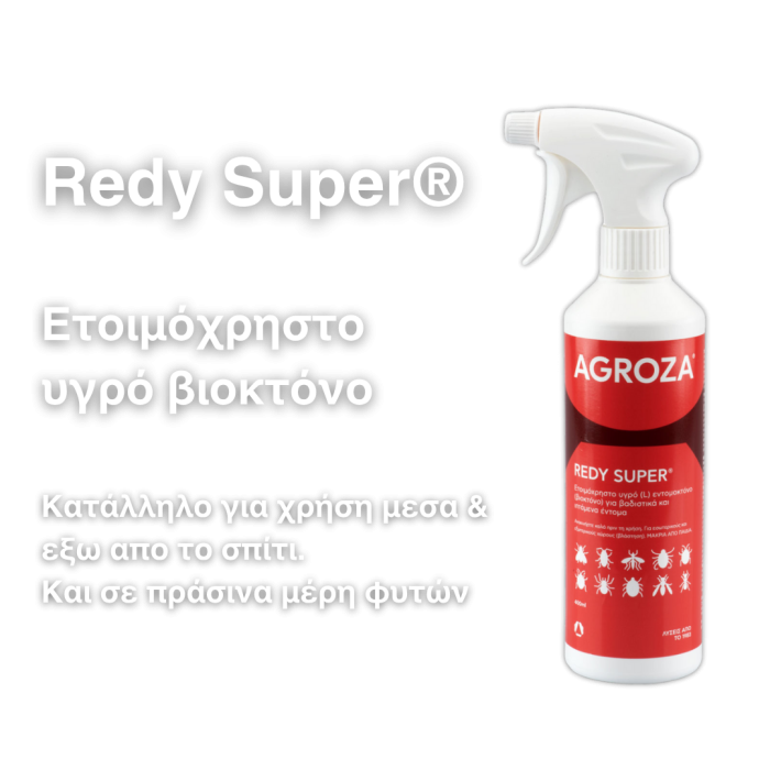Χάρη στη συσκευασία με εργονομική σκανδάλη, εφαρμόζεται εύκολα και με ακρίβεια, χωρίς προετοιμασία ή αραίωση. Είναι κατάλληλο για κατοικίες, επαγγελματικούς χώρους, καταλύματα & αποθήκες, αποτελώντας ιδανική λύση για καθημερινή προστασία. Το Redy Super αποτελεί προϊόν απόλυτης αξιοπιστίας, με παρουσία στην αγορά από το 2002.