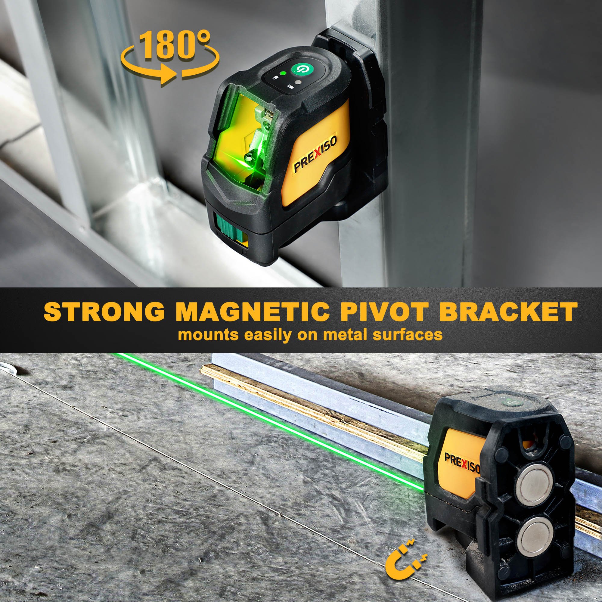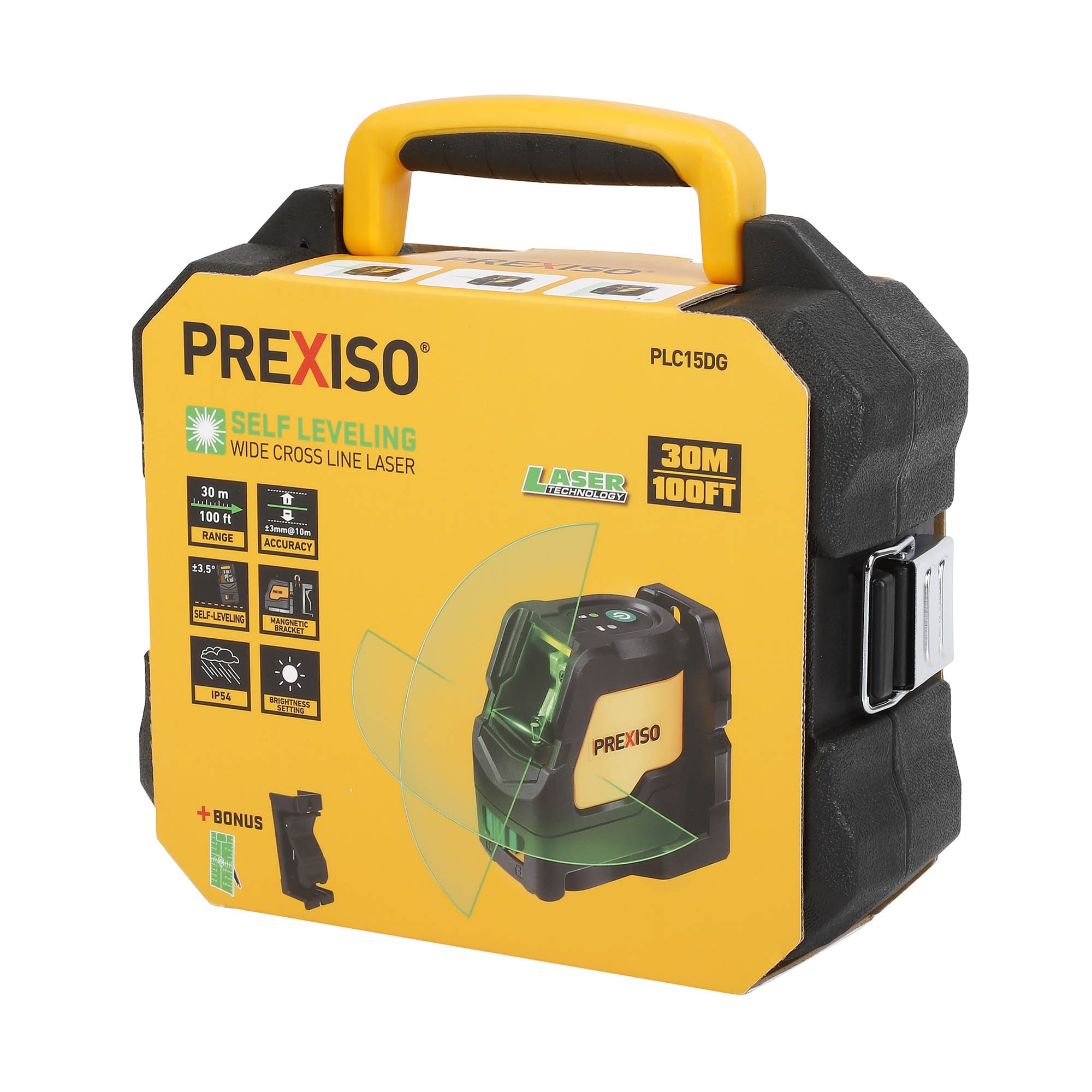 Το Αλφάδι Λέιζερ Σταυρού PREXISO PLC15DG 30m Ανοιχτής Γωνίας συνδυάζει ελβετική τεχνολογία ακριβείας με πράσινη δέσμη υψηλής φωτεινότητας, προσφέροντας μέγιστη ορατότητα ακόμη και σε εξωτερικούς ή έντονα φωτισμένους χώρους.