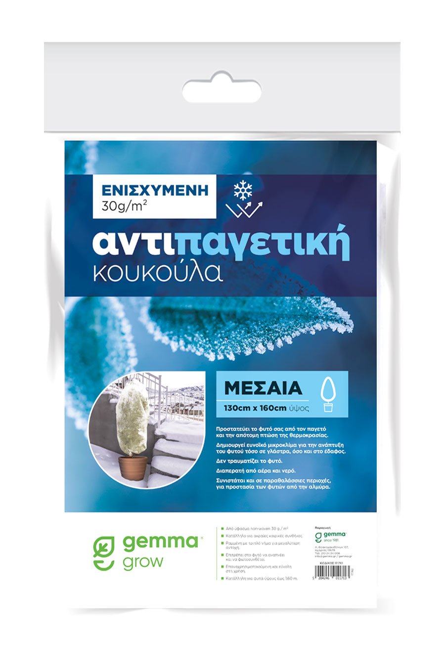 Η Αντιπαγετική Κουκούλα 30g Μεσαία (1,60 m) προσφέρει αξιόπιστη και ενισχυμένη προστασία σε όλα τα ευπαθή φυτά απέναντι σε παγετό, απότομες πτώσεις θερμοκρασίας, χαλάζι και έντονη ηλιοφάνεια. Η υψηλής αντοχής υφή της επιτρέπει στα φυτά να αναπνέουν κανονικά, ενώ ταυτόχρονα τα προστατεύει από τραυματισμούς και αντίξοες καιρικές συνθήκες.