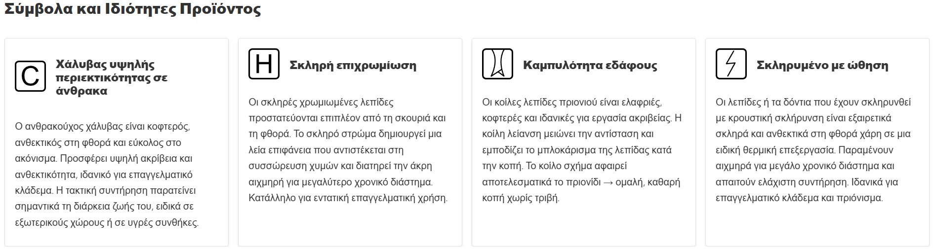 ● Χάλυβας υψηλής περιεκτικότητας σε άνθρακα: 100%