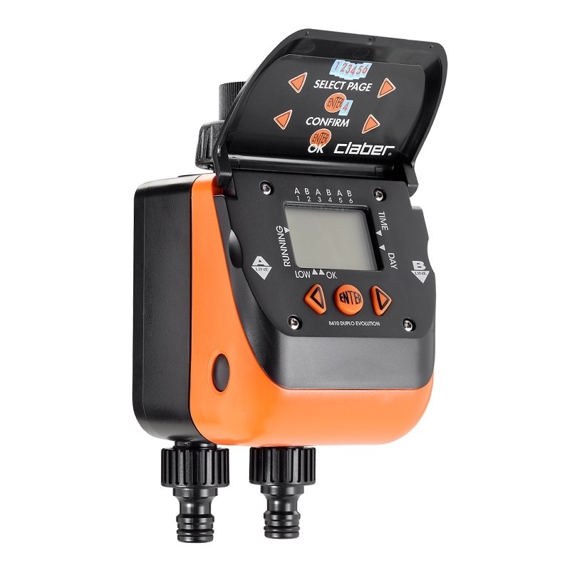 Θέλετε να ποτίζετε δύο διαφορετικές περιοχές του κήπου σας με διαφορετικό πρόγραμμα; Ο Claber Aquadue Duplo Evolution είναι ο ψηφιακός προγραμματιστής βρύσης δύο εξόδων που προσφέρει απόλυτη ελευθερία και ακρίβεια. Σχεδιασμένος για να λύνει το πρόβλημα των περιορισμένων επιλογών στους προγραμματιστές μίας εξόδου, σας επιτρέπει να ρυθμίσετε έως και 3 ποτίσματα την ημέρα για κάθε γραμμή ξεχωριστά.