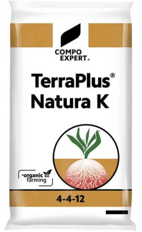 Το TerraPlus® Natura K 4-4-12 της Compo Expert είναι ένα 100% οργανικό κοκκώδες λίπασμα NPK, πιστοποιημένο για βιολογική γεωργία και σχεδιασμένο για καλλιέργειες με αυξημένες ανάγκες σε Κάλιο. Η υψηλή περιεκτικότητά του σε Κ (12%) το κάνει ιδανικό για φθινοπωρινές εφαρμογές, περιόδους ωρίμανσης και εδάφη με έλλειψη καλίου.