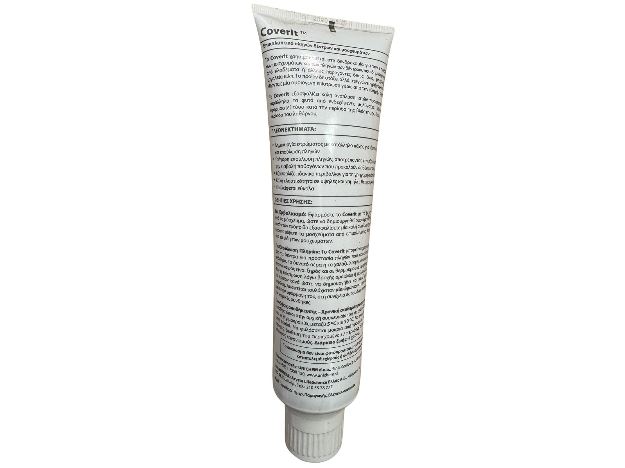 Το Coverit 350 g είναι η πρακτική συσκευασία σε σωληνάριο, ιδανική για ερασιτέχνες κηπουρούς και επαγγελματίες δενδροκόμους. Χάρη στη μορφή του, εφαρμόζεται εύκολα με βουρτσάκι κατευθείαν από το σωληνάριο για γρήγορη επάλειψη σε πληγές και εμβολιασμούς.