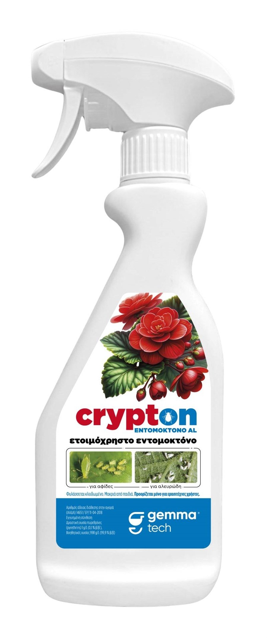 Το Crypton Ετοιμόχρηστο Εντομοκτόνο 350cc είναι η εύκολη και άμεση λύση για αφίδες (μελίγκρες) και αλευρώδη, ειδικά σχεδιασμένο για ερασιτέχνες χρήστες που θέλουν γρήγορη και αποτελεσματική προστασία στα φυτά του μπαλκονιού και του κήπου. Με δράση επαφής και στομάχου, δρα στο νευρικό σύστημα των εντόμων, προκαλώντας γρήγορη παράλυση και θάνατο.