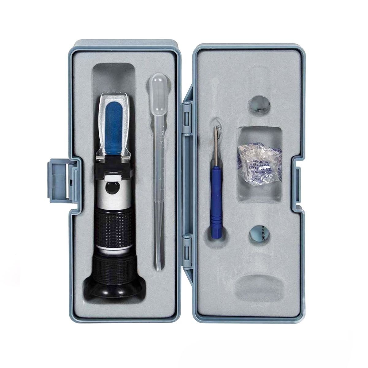 ● Σετ που περιλαμβάνει το διαθλασίμετρο, πιπέτα δειγματοληψίας, κατσαβίδι ρύθμισης και πανάκι καθαρισμού σε ανθεκτική θήκη