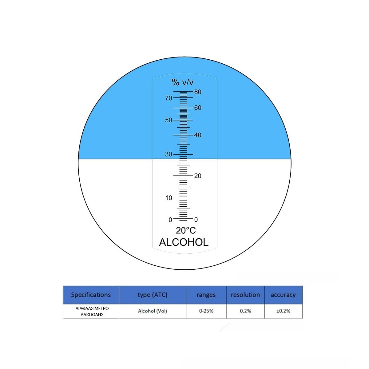 ✅ Ευρύ φάσμα μέτρησης 0-80% που καλύπτει όλα τα δυνατά αποστάγματα.