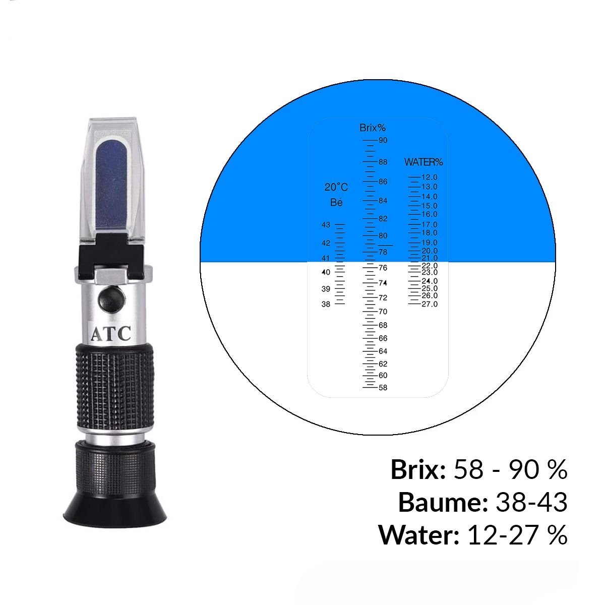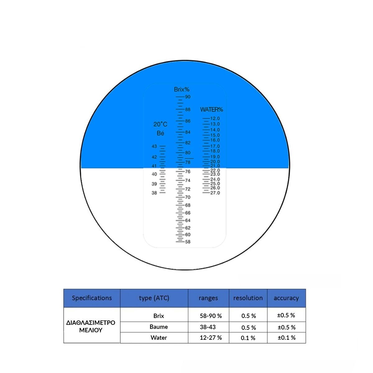 ● Ακρίβεια: Brix ±0.5%, Baume ±0.5, Water ±1%