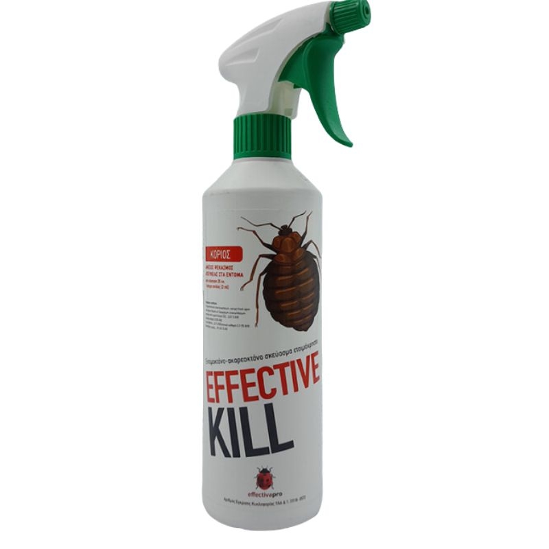 Το Effective Kill είναι ένα ισχυρό εντομοκτόνο–ακαρεοκτόνο υγρό που παρέχει άμεση και αποτελεσματική δράση απέναντι σε δεκάδες έντομα και ακάρεα. Η προηγμένη του σύνθεση συνδυάζει εκχύλισμα Chrysanthemum cinerariaefolium με Cypermethrin, προσφέροντας γρήγορη εξόντωση, υψηλή αποτελεσματικότητα και υπολειμματική προστασία μέχρι 1 εβδομάδα.