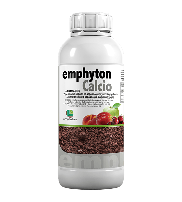 Το Emphyton Calcio είναι ένα προηγμένης τεχνολογίας συμπλοκοποιημένο ασβέστιο (CaO) με λιγνοσουλφονικά οξέα, ειδικά σχεδιασμένο για άμεση απορρόφηση από φύλλωμα και ρίζες. Με υψηλή αφομοίωση και σταθερότητα σε ευρύ φάσμα pH, αποτελεί ιδανική λύση για πρόληψη και αντιμετώπιση τροφοπενιών ασβεστίου, βελτιώνοντας σημαντικά τη δομή των φυτικών ιστών, την αντοχή των καρπών και τη μετασυλλεκτική διάρκεια.