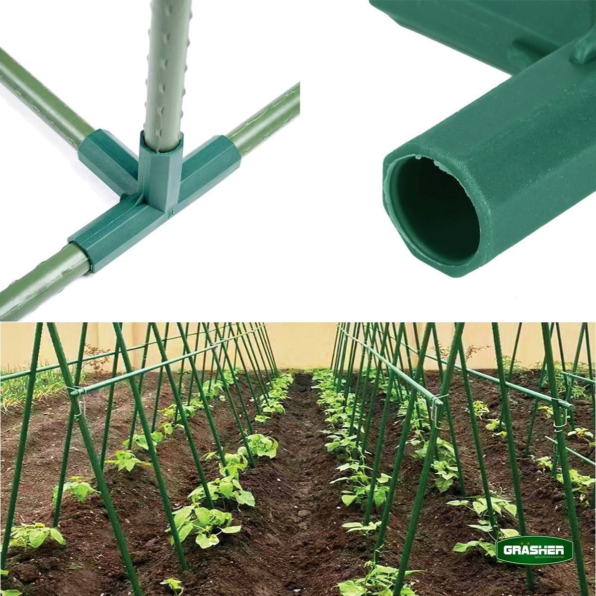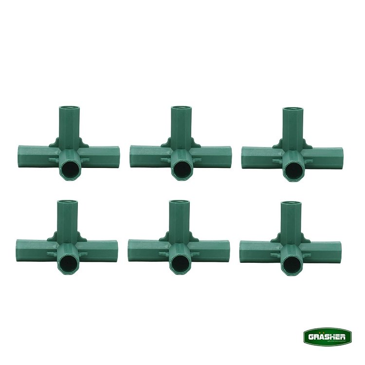 Δημιουργήστε έναν στιβαρό σκελετό για να στηρίξετε δίχτυα σκίασης ή αντιχαλαζικά δίχτυα πάνω από τις ευαίσθητες καλλιέργειές σας. Τα ενωτικά 4 θέσεων γωνία σας επιτρέπουν να φτιάξετε σταθερά "κουτιά" υποστύλωσης που προστατεύουν τα φυτά σας, προσφέροντας ταυτόχρονα επαγγελματική εμφάνιση στον κήπο σας.