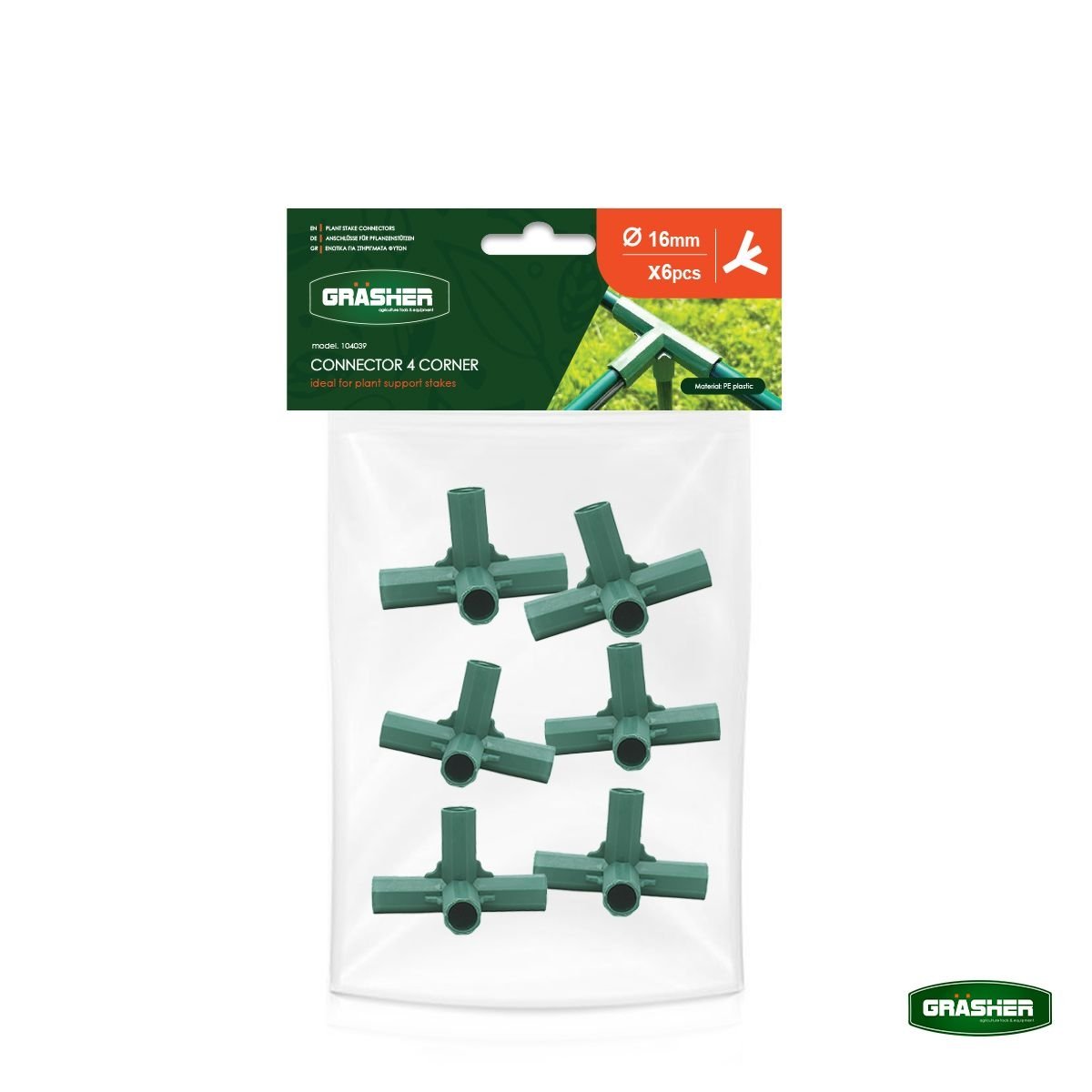 Τα επαγγελματικά ενωτικά 4 θέσεων Γωνία GRASHER Φ.16mm είναι το απόλυτο εργαλείο για τη δημιουργία πολύπλοκων και εξαιρετικά σταθερών σκελετών υποστύλωσης. Ο μοναδικός σχεδιασμός τους επιτρέπει τη σύνδεση τεσσάρων πασάλων σε γωνιακή διάταξη, καθιστώντας τα ιδανικά για τη δημιουργία γωνιών σε τρισδιάστατα πλαίσια, υπερυψωμένα παρτέρια και προστατευτικούς κλωβούς.