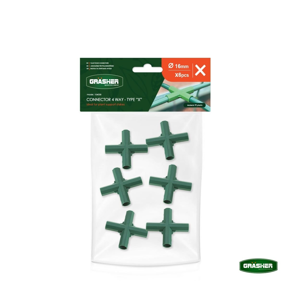 Τα επαγγελματικά ενωτικά 4 θέσεων "X" GRASHER Φ.16mm αποτελούν την κορυφαία επιλογή για τη δημιουργία σύνθετων και εξαιρετικά σταθερών σκελετών υποστύλωσης. Σχεδιασμένα για να συνδέουν τέσσερις πασάλους ταυτόχρονα σε σχήμα σταυρού, επιτρέπουν τη διαμόρφωση εσωτερικών πλεγμάτων και πολυδιάστατων πλαισίων που προσφέρουν την απόλυτη ακαμψία στην καλλιέργειά σας.