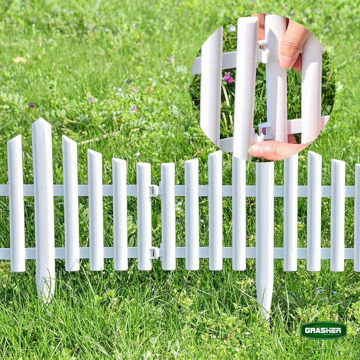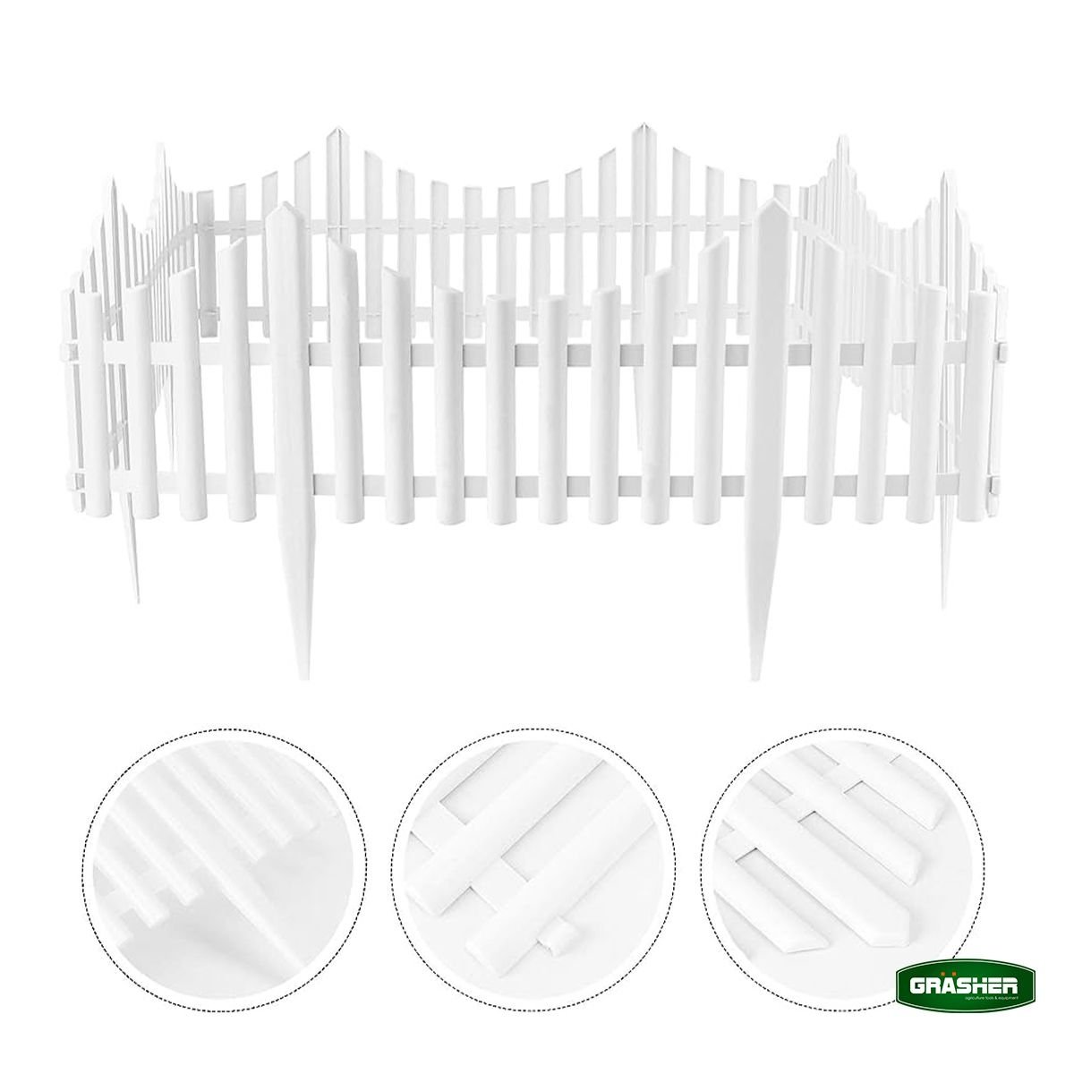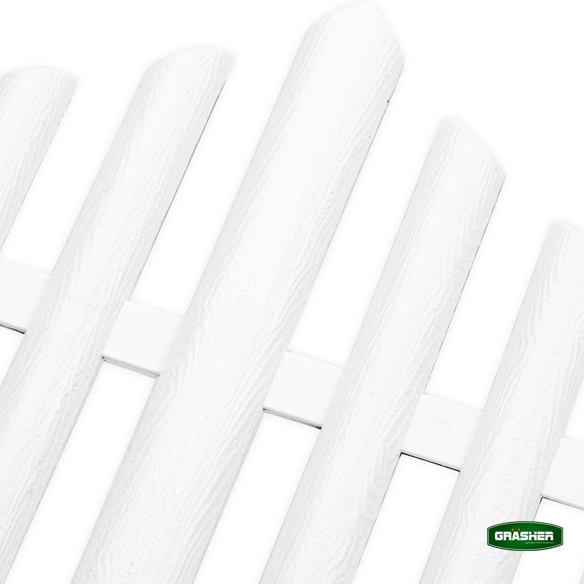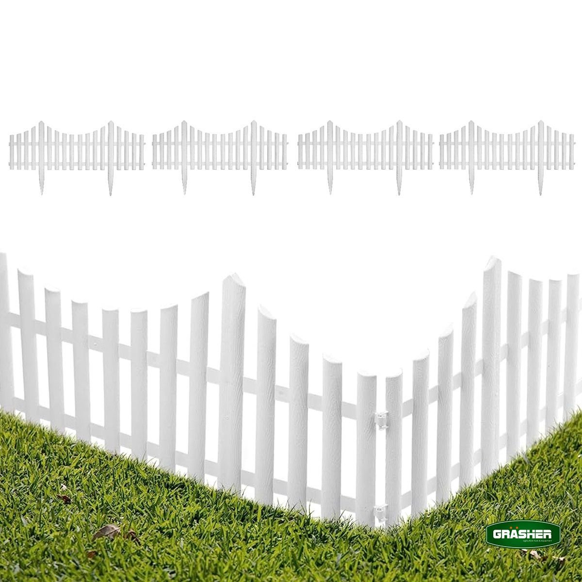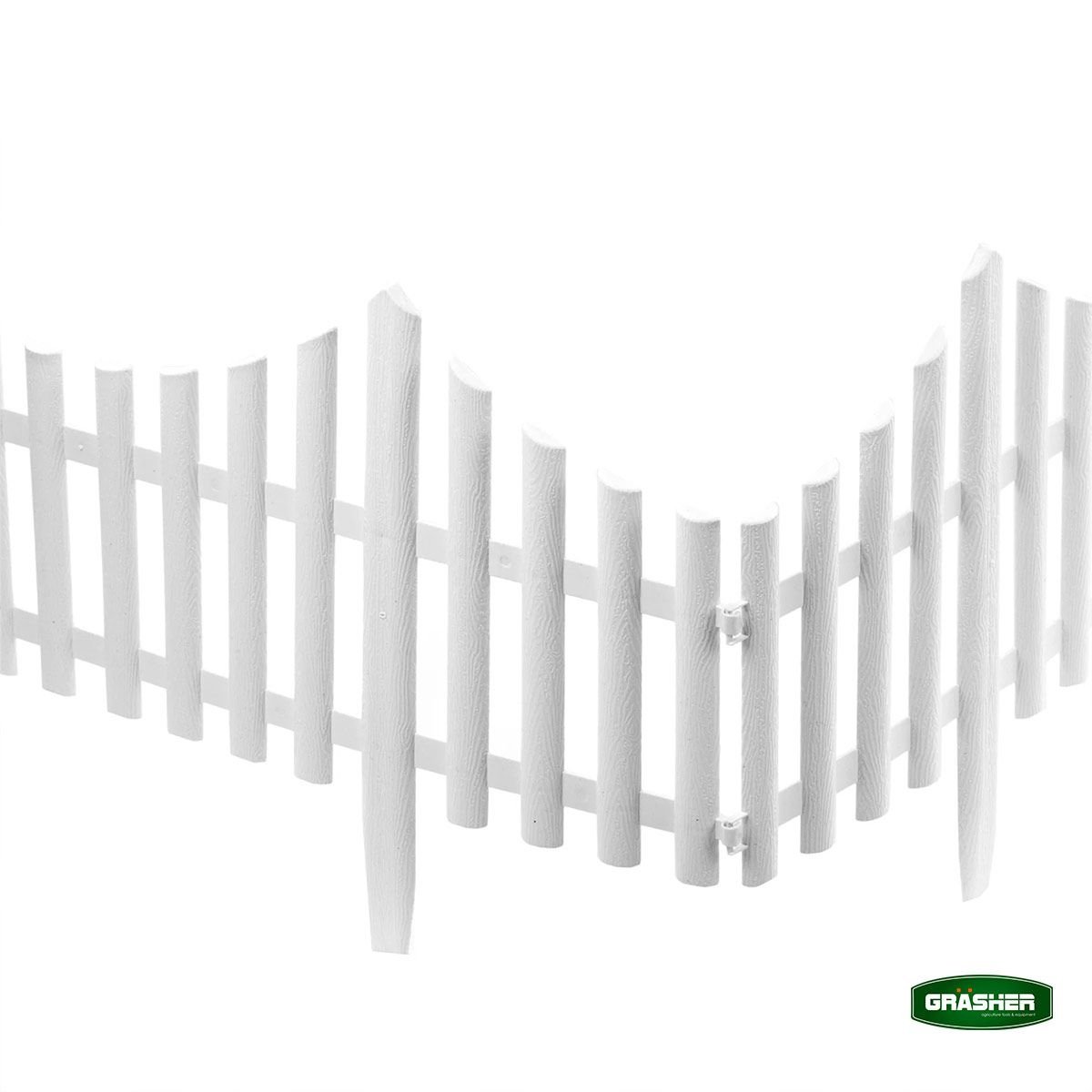 Ο πλαστικός φράχτης κήπου Grasher σε λευκό χρώμα είναι μια πρακτική και διακοσμητική λύση για την οριοθέτηση παρτεριών, μονοπατιών και κήπων. Το σετ περιλαμβάνει 4 αρθρωτά τμήματα που συνδέονται μεταξύ τους και καλύπτουν συνολικό μήκος 2,30 μέτρων, με ύψος 33 cm ανά τμήμα.