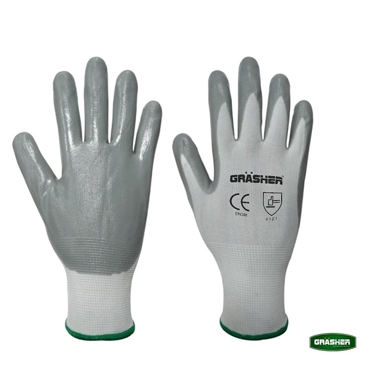 Τα γάντια εργασίας νιτριλίου GRASHER προσφέρουν την ιδανική ισορροπία ανάμεσα σε αντοχή, ευελιξία και ασφάλεια. Ο συνδυασμός βαμβακερού υφάσματος με επίστρωση νιτριλίου εξασφαλίζει σταθερό κράτημα, άνετη εφαρμογή και υψηλή αντοχή σε φθορές.