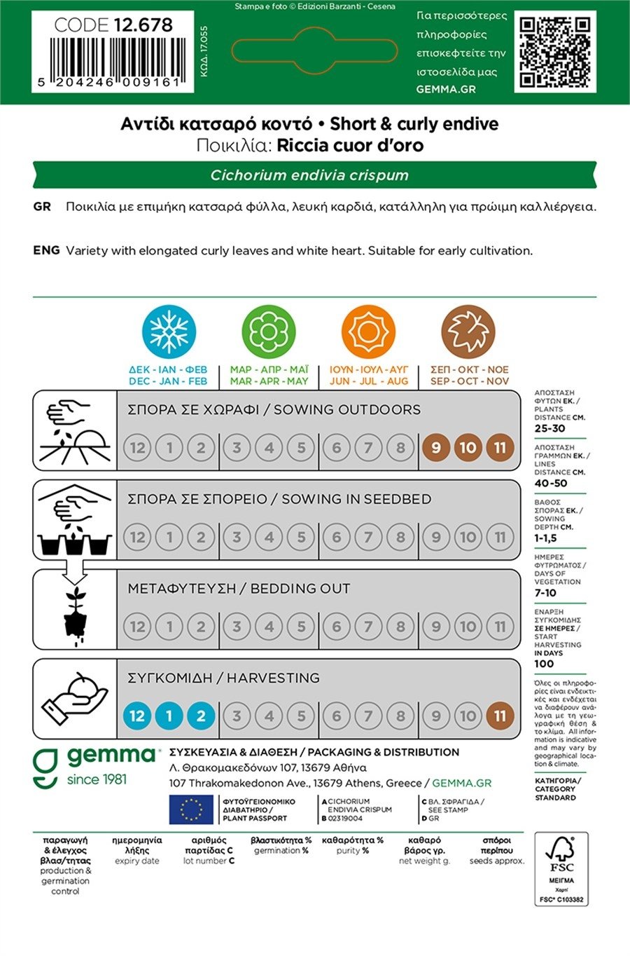 Με εύκολη σπορά, σταθερή φυτρωτικότητα 7–10 ημερών και συγκομιδή περίπου σε 100 ημέρες, αποτελεί εξαιρετική επιλογή για επαγγελματίες αλλά και αρχάριους. Η συσκευασία φάκελου της Gemma εξασφαλίζει απόλυτη φρεσκάδα και προστασία των σπόρων, με πιστοποιημένη ποιότητα και εγγυημένη βλαστικότητα.