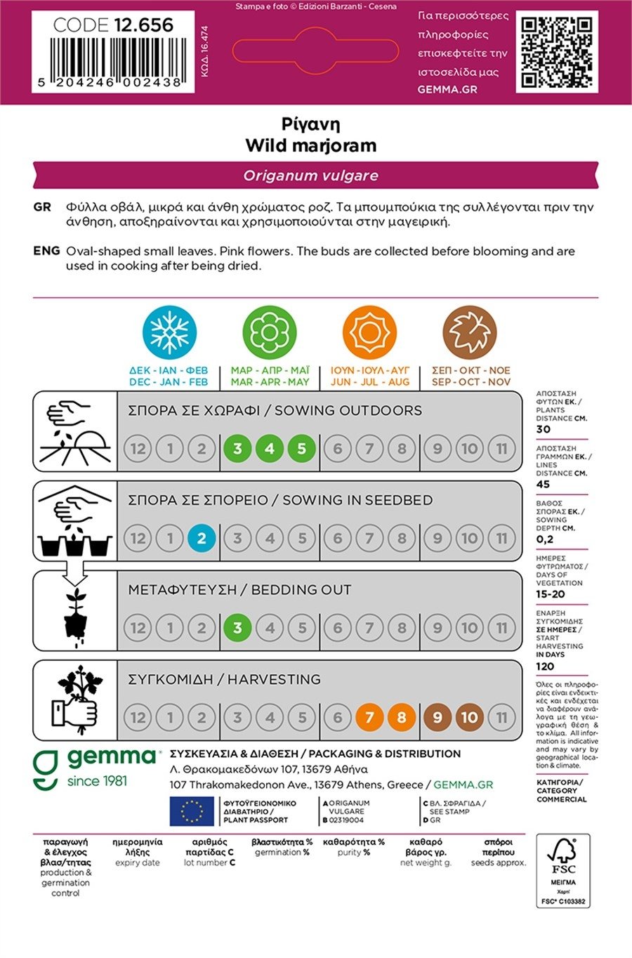 ● Βάθος σποράς: 0,2–1 cm σε ηλιόλουστο, στραγγερό έδαφος