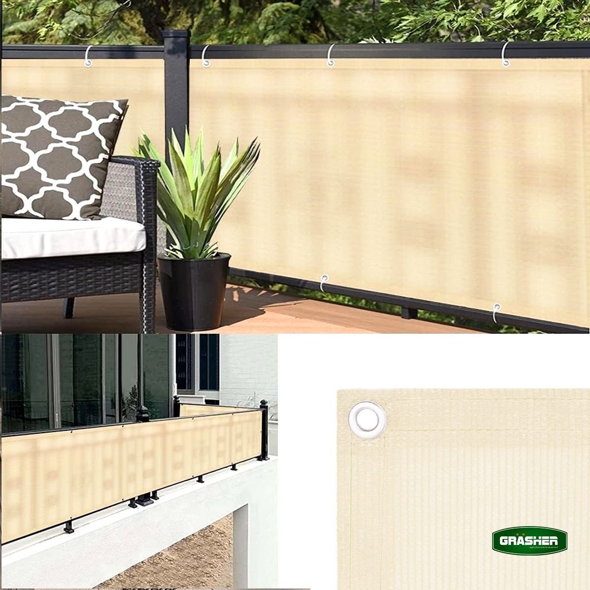 Το Διαχωριστικό Δίχτυ Μπαλκονιού GRASHER 160gr/m² Εκρού 0,75x6m είναι η ιδανική λύση για απόκρυψη, σκίαση και προστασία σε μπαλκόνια και εξωτερικούς χώρους. Με βαθμό απόκρυψης 85%, μειώνει την ορατότητα από γειτονικά κτίρια, ενώ προσφέρει προστασία από τον ήλιο και τον αέρα, δημιουργώντας έναν πιο άνετο και ιδιωτικό χώρο.