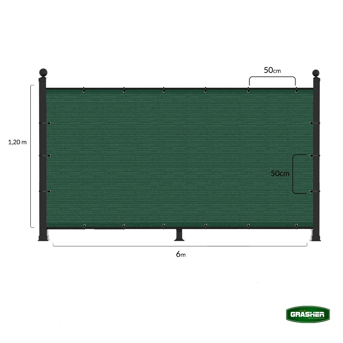 Το Διαχωριστικό Δίχτυ Μπαλκονιού 160gr/m² Πράσινο 1,20x6m GRASHER είναι η ιδανική λύση για απόλυτη ιδιωτικότητα, προστασία από τον αέρα και σκίαση από τον ήλιο σε μπαλκόνια και εξωτερικούς χώρους. Με βαθμό απόκρυψης 85%, δημιουργεί έναν πιο άνετο και προστατευμένο χώρο, χωρίς να “κλείνει” το φως.