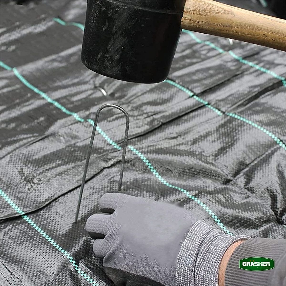 Για καλύτερη απόδοση, στερέωσε το γεωύφασμα με πλαστικά ή μεταλλικά πασαλάκια ανά 50–70 cm ώστε να παραμένει τέλεια τεντωμένο χωρίς ανασηκώματα από τον αέρα.