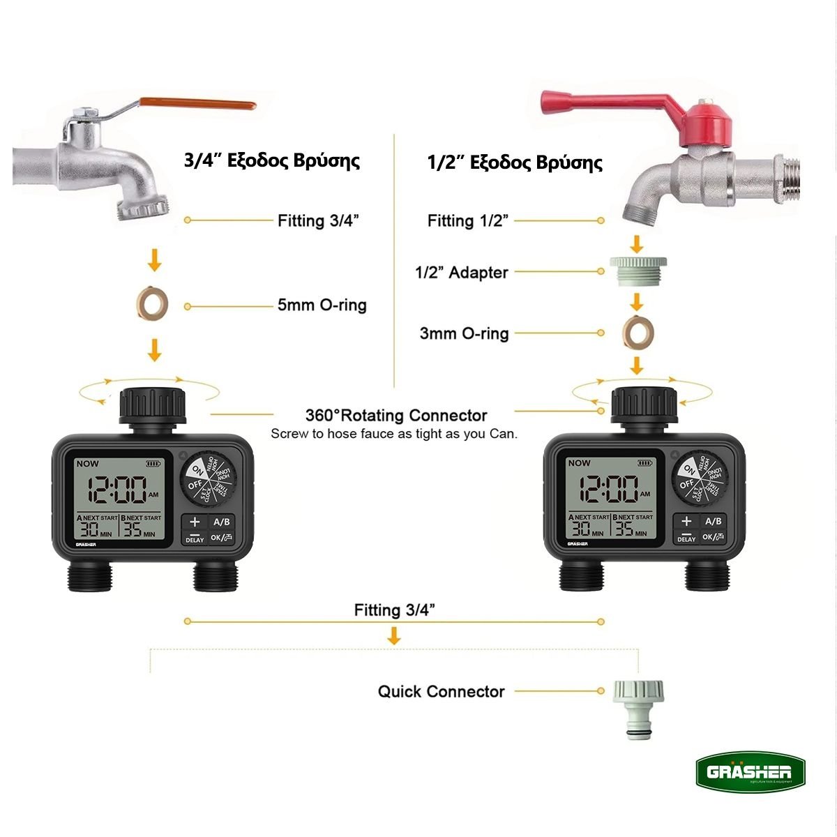 ✅ 2 ανεξάρτητες έξοδοι ποτίσματος – ιδανικός για διαφορετικές ζώνες