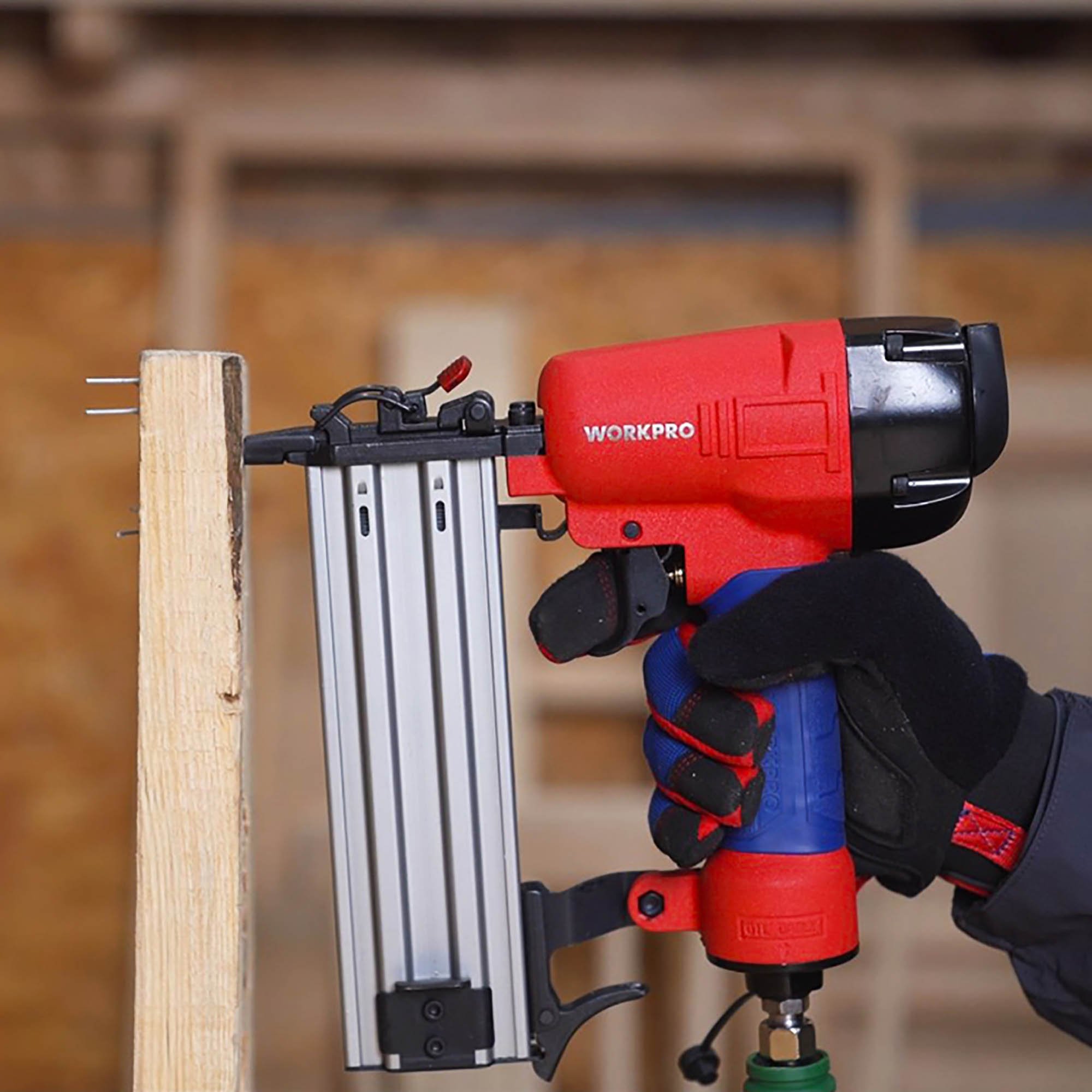 Με πίεση λειτουργίας 0.4–0.8Mpa (60–116psi) και γεμιστήρα 100 τεμαχίων, σου επιτρέπει συνεχόμενη εργασία χωρίς διακοπές. Η Soft Grip λαβή μειώνει την κόπωση και προσφέρει απόλυτο έλεγχο, ενώ το σετ 1000 πρόκες και εξαρτημάτων περιλαμβάνεται, ώστε να είσαι έτοιμος για δουλειά από το πρώτο λεπτό.