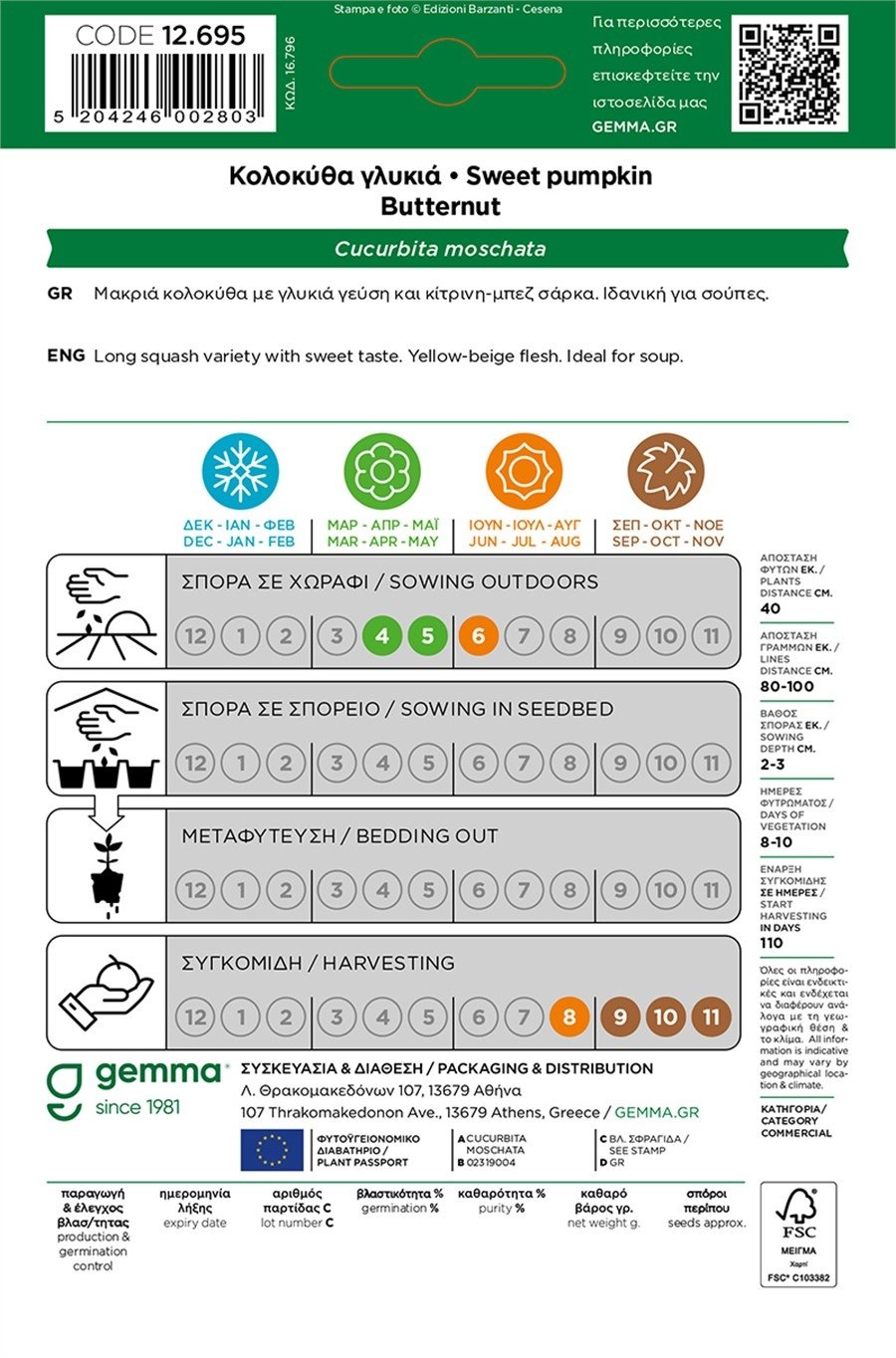 Με σπόρους Gemma εξασφαλίζεις υψηλή φυτρωτικότητα, ομοιομορφία καρπών και συσκευασία με εγγυημένη φρεσκάδα. Αν θες ένα λαχανικό που «γράφει» στη γεύση και πουλάει από τη φωτογραφία, η Butternut είναι το “hero product” σου.