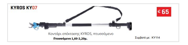 Το Κοντάρι Προέκτασης KYROS KY07 Japan Technology είναι η ιδανική λύση για όσους θέλουν να επεκτείνουν το ψαλίδι KY114 και να πραγματοποιούν εύκολα, γρήγορα και με ασφάλεια κάθε εργασία κλαδέματος σε ύψος.