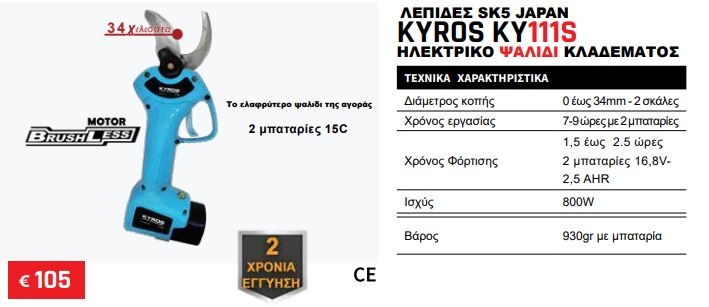 Το KYROS KY111-S Japan Technology είναι το πλέον εξελιγμένο ηλεκτρικό ψαλίδι κλαδέματος της κατηγορίας του, σχεδιασμένο για μέγιστη απόδοση, άνεση και αντοχή.