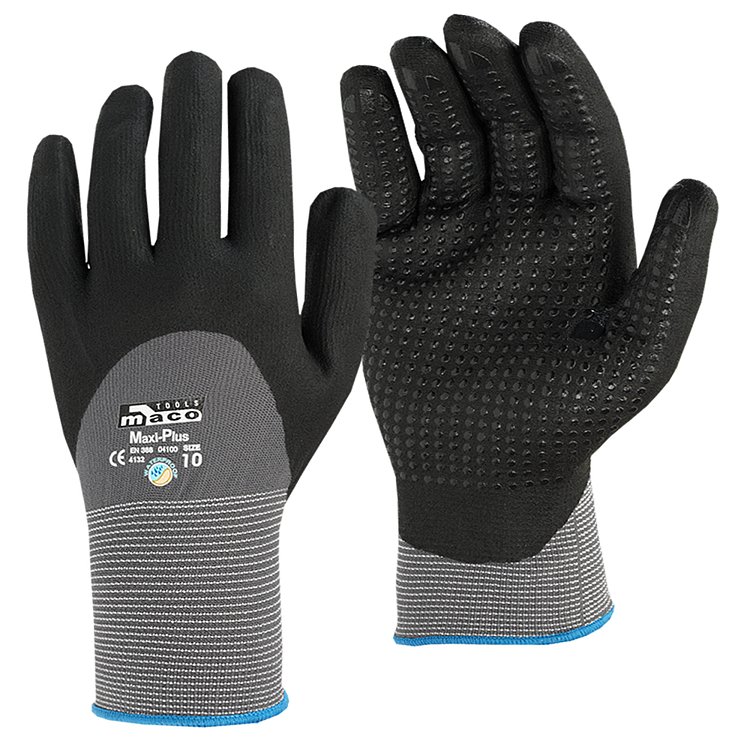 Τα Maco-Plus 4100 είναι επαγγελματικά αδιάβροχα γάντια νιτριλίου, σχεδιασμένα για άνετη και ασφαλή εργασία σε περιβάλλοντα με υγρασία, λάδια ή απαιτητική χειρωνακτική χρήση. Η ειδική αντιολισθητική επίστρωση προσφέρει μέγιστο κράτημα, ενώ το ελαστικό ύφασμα επιτρέπει τέλεια εφαρμογή, ευελιξία και εργονομία.