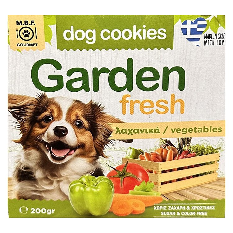 Τα MBF Gourmet Garden Fresh Dog Cookies με λαχανικά είναι τραγανά μπισκότα σκύλου, φτιαγμένα με επιλεγμένα λαχανικά για φυσική γεύση και απόλαυση. Αποτελούν την ιδανική επιλογή για καθημερινή επιβράβευση, προσφέροντας ευχάριστη υφή και γεύση που λατρεύουν οι σκύλοι.