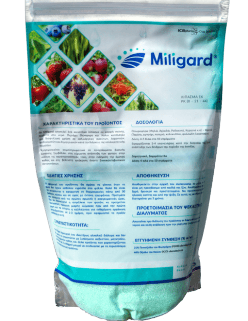 Το Miligard είναι ένα προηγμένο λίπασμα PK διαφυλλικής εφαρμογής σε μορφή υδατοδιαλυτής σκόνης, σχεδιασμένο για να ενισχύει την αντοχή, τη ζωηρότητα και τη φυσική άμυνα των καλλιεργειών. Με ισχυρή περιεκτικότητα σε Φώσφορο και Κάλιο, συμβάλλει στην καλύτερη ανθοφορία, στην αυξημένη παραγωγή και στην ταχύτερη ανάκαμψη των φυτών από βιοτικά και αβιοτικά στρες.