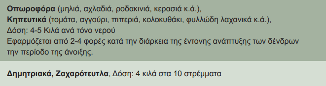 ● Γενική χρήση διαφυλλικού: 250–350 γρ./100 λίτρα νερού