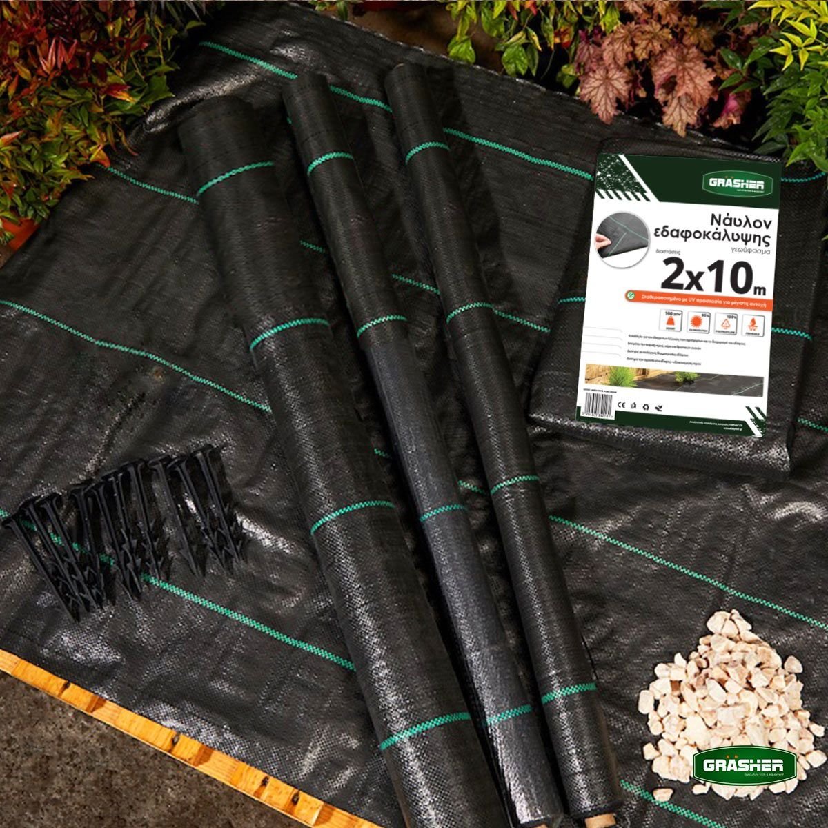 Το Νάυλον Εδαφοκάλυψης GRASHER 2x10m είναι η ιδανική επιλογή για πλήρη προστασία του εδάφους από ζιζάνια, αγριόχορτα και υγρασία. Κατασκευασμένο από πολυπροπυλένιο υψηλής αντοχής (PP), προσφέρει μακροχρόνια ανθεκτικότητα, διαπερατότητα νερού και αέρα, και UV προστασία 5 ετών, εξασφαλίζοντας σταθερή απόδοση σε κάθε εποχή.