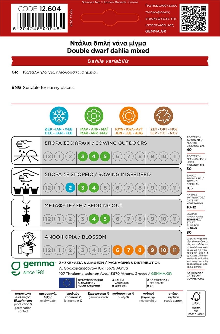 ● Ημέρες φυτρώματος: 10–12 ημέρες
