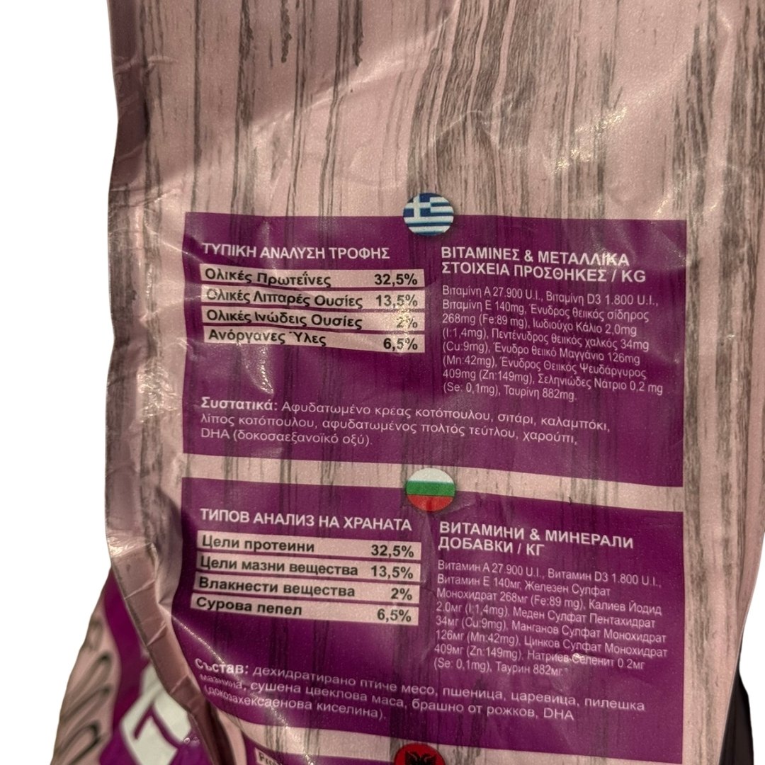 ✅ Υψηλή περιεκτικότητα σε πρωτεΐνη (32,5%) που υποστηρίζει τη ζωτικότητα και τη μυϊκή μάζα της γάτας σας.