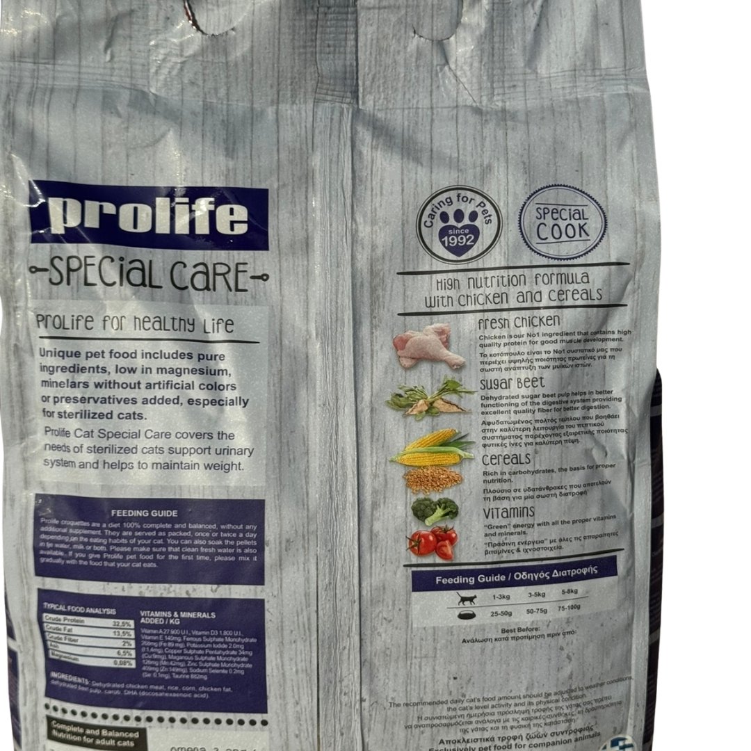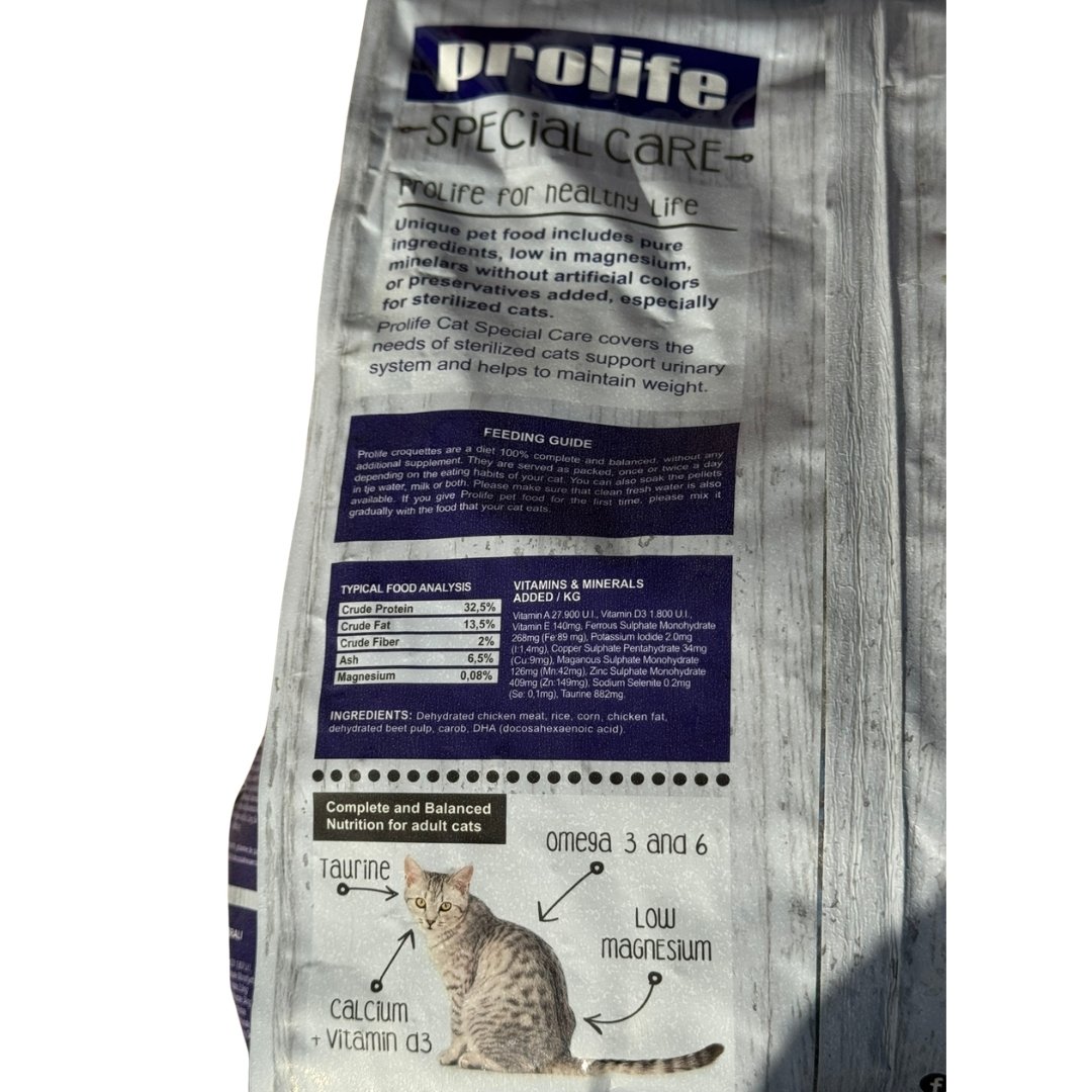 Η στείρωση φέρνει αλλαγές στον μεταβολισμό και στις ανάγκες της γάτας σας, καθιστώντας απαραίτητη μια εξειδικευμένη διατροφή. Η Prolife Special Care Urinary είναι η ιδανική λύση, καθώς συνδυάζει την υψηλή θρεπτική αξία με τη στοχευμένη φροντίδα. Χάρη στη σύνθεση με χαμηλό μαγνήσιο, βοηθά αποτελεσματικά στην πρόληψη λίθων και στην καλή λειτουργία του ουροποιητικού συστήματος.