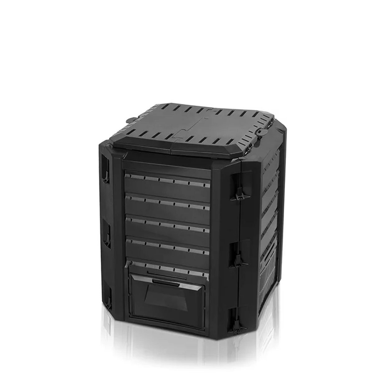 Η ελαφριά αλλά ανθεκτική κατασκευή και το μαύρο χρώμα που βοηθά στη διατήρηση της θερμοκρασίας, επιταχύνουν τη διαδικασία κομποστοποίησης. Ένα αξιόπιστο εργαλείο για όσους θέλουν απόδοση, ευκολία και βιωσιμότητα στον κήπο τους.
