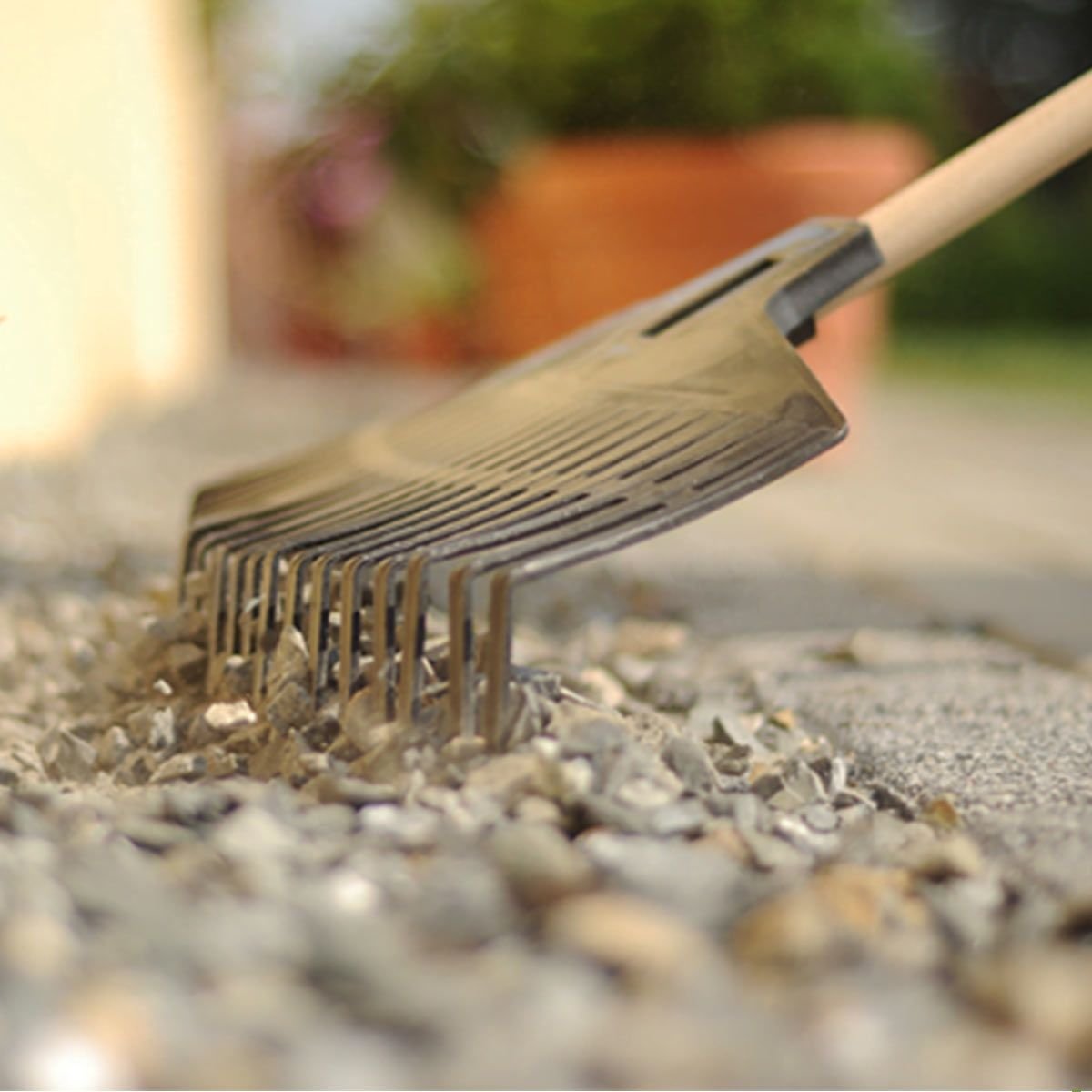 Χρησιμοποίησε την τσουγκράνα σε στεγνή επιφάνεια για πιο εύκολο καθαρισμό και λιγότερη καταπόνηση.