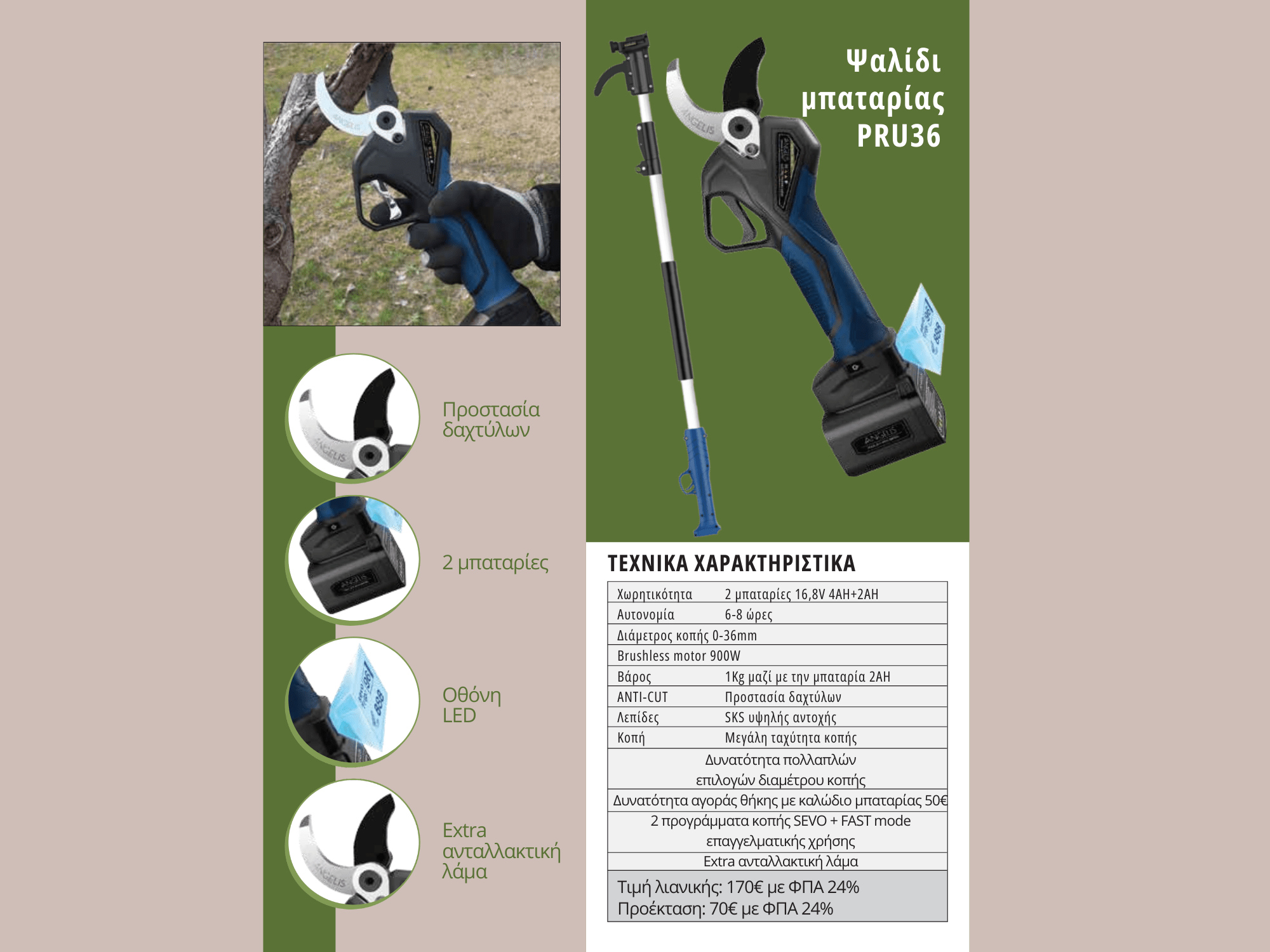 Χάρη στις λεπίδες SKS υψηλής αντοχής, τα δύο προγράμματα κοπής (SEVO + FAST mode) και την τεχνολογία ANTI-CUT, προσφέρει γρήγορο και ασφαλές κλάδεμα χωρίς καταπόνηση. Με βάρος μόλις 1Kg, είναι ιδανικό για επαγγελματίες και ερασιτέχνες που αναζητούν επαγγελματικό αποτέλεσμα, ευκολία και εργονομία.
