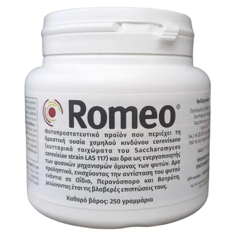 Είναι το ιδανικό εργαλείο για τον σύγχρονο καλλιεργητή που επιζητεί μηδενικά χημικά υπολείμματα και αποτελεσματική προστασία από Ωίδιο, Περονόσπορο, Βοτρύτη και Γλοιοσπόριο. Το Romeo είναι κατάλληλο για 34 διαφορετικές καλλιέργειες, συμπεριλαμβανομένων του αμπελιού, της ελιάς και των κηπευτικών, ενώ αποτελεί την κορυφαία επιλογή για προγράμματα Βιολογικής Γεωργίας και ολοκληρωμένης διαχείρισης (IPM).
