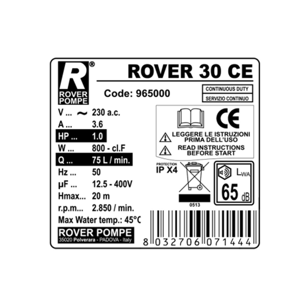 Με τον ενισχυμένο κινητήρα 0.9 HP και τα στόμια διαμέτρου 30 mm, η αντλία αυτή εξασφαλίζει σταθερή ροή ακόμη και σε απαιτητικές συνθήκες. Η τεχνολογία διπλής κατεύθυνσης σας δίνει τον απόλυτο έλεγχο, επιτρέποντάς σας να αλλάζετε τη φορά της μετάγγισης με έναν απλό διακόπτη, χωρίς να μετακινείτε σωλήνες. Με την εγγύηση της ιταλικής Rover Pompe, επενδύετε σε ένα εργαλείο που συνδυάζει την στιβαρή κατασκευή με την κορυφαία απόδοση!