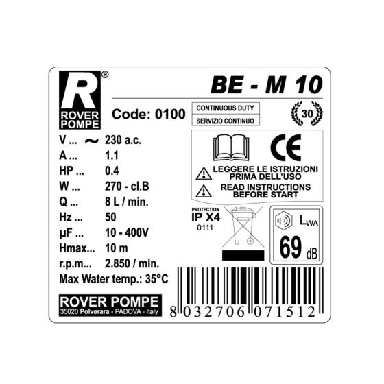 Παρά τις μικρές της διαστάσεις, η BE-M 10 διαθέτει ισχυρό κινητήρα 0.4 HP και τεχνολογία διπλής κατεύθυνσης, επιτρέποντάς σας να ελέγχετε πλήρως τη ροή του υγρού με το πάτημα ενός διακόπτη. Η κατασκευή από ποιοτικό μπρούτζο εγγυάται ότι η αντλία σας θα παραμείνει ανθεκτική στη διάβρωση, προσφέροντας καθαρές μεταγγίσεις για πολλά χρόνια. Μην αφήνετε τη χειρωνακτική εργασία να σας κουράζει· αναβαθμίστε τη διαδικασία σας με την ιταλική υπεροχή της Rover Pompe!