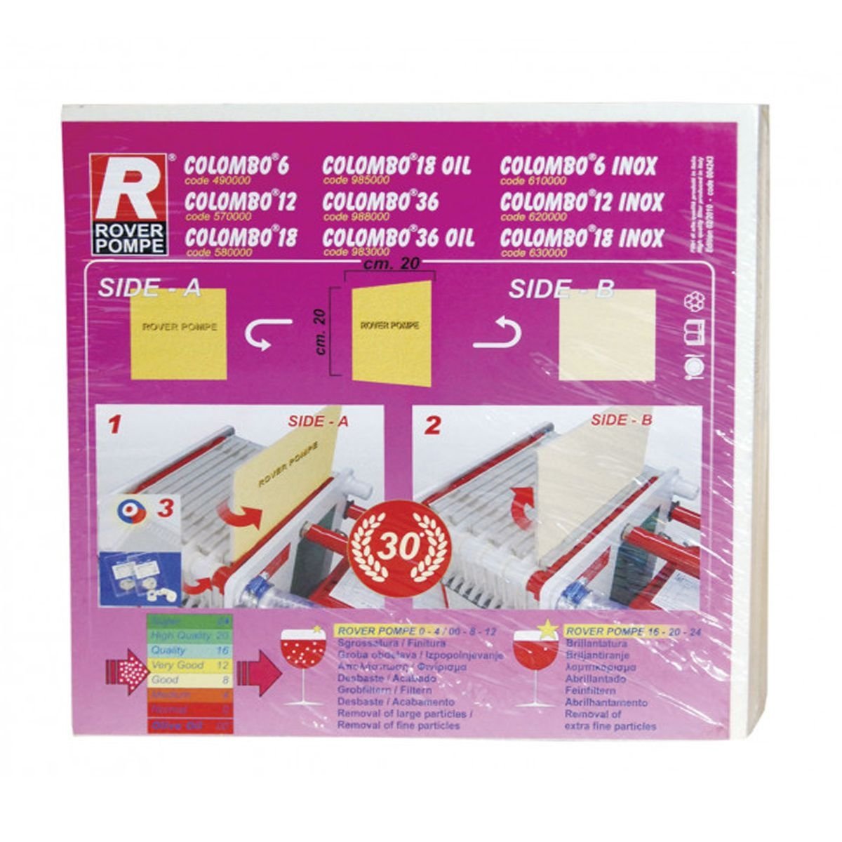 ✅ Πιστοποιημένη ποιότητα από τη Rover Pompe, η οποία εγγυάται σταθερή απόδοση σε κάθε φύλλο φίλτρου.