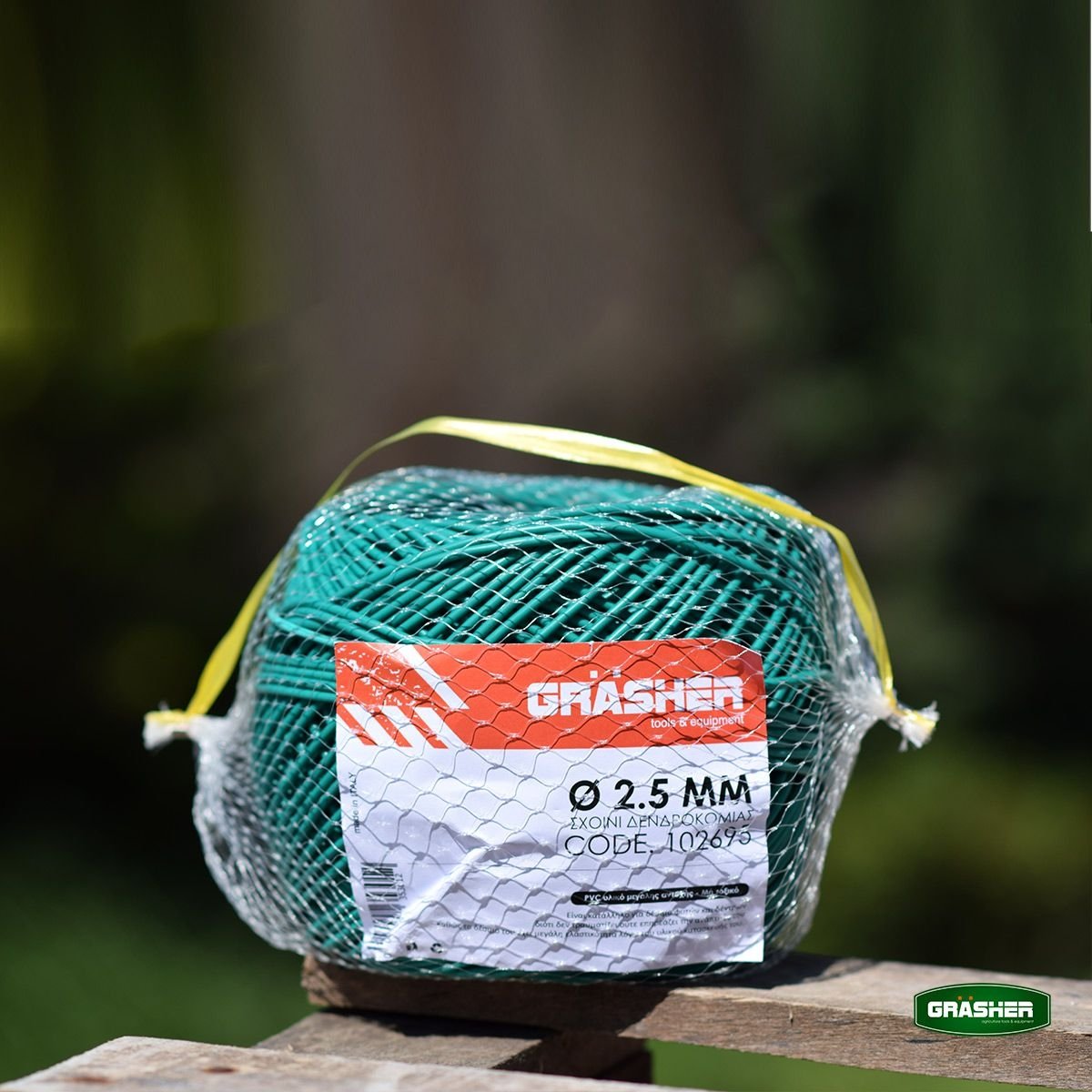 Το πράσινο χρώμα του σχοινιού Grasher προσφέρει άριστο αισθητικό αποτέλεσμα, καθώς "χάνεται" μέσα στο φύλλωμα, ενώ η ελαστικότητα του PVC επιτρέπει στον κορμό να μεγαλώνει χωρίς να δημιουργούνται πληγές ή στραγγαλισμοί στο φυτό.