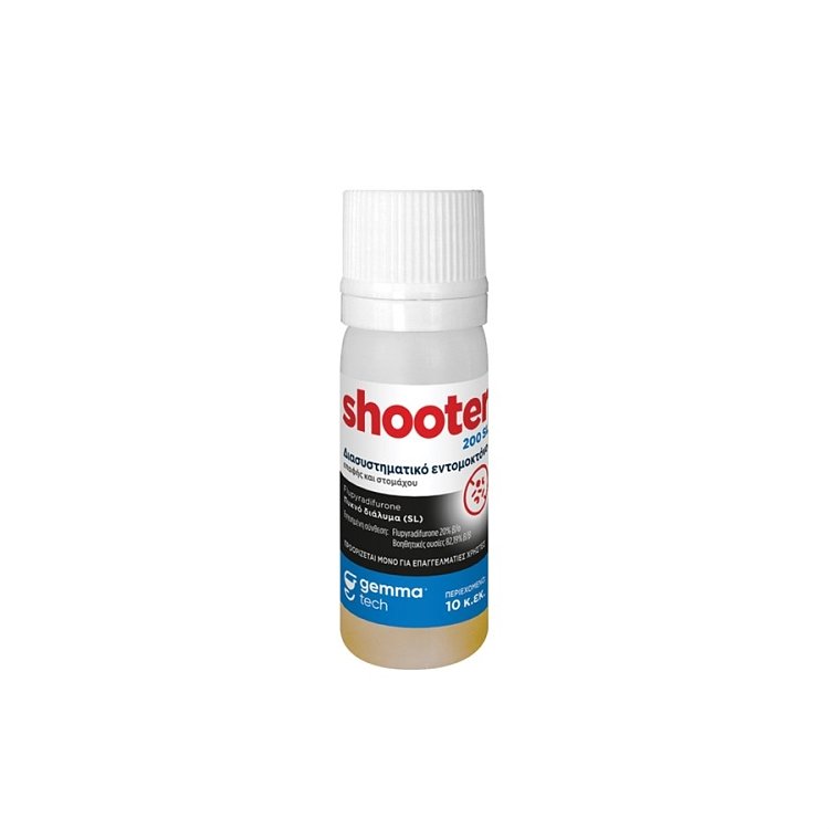 Το Shooter 200 SL της Gemma είναι ένα σύγχρονο διασυστηματικό εντομοκτόνο επαφής και στομάχου, σχεδιασμένο για άμεση και αξιόπιστη καταπολέμηση μυζητικών και μασητικών εντόμων σε υπαίθριες και θερμοκηπιακές καλλιέργειες. Η καινοτόμα δραστική ουσία Flupyradifurone προσφέρει ταχύτατο knock down effect, διακόπτοντας άμεσα τη δραστηριότητα των εντόμων.