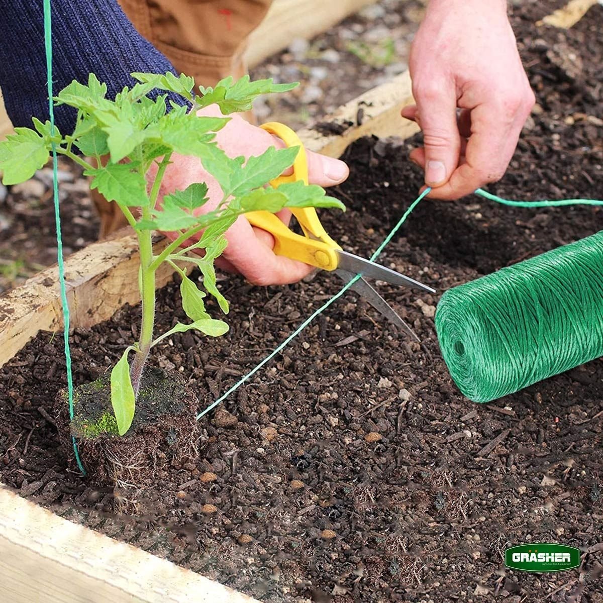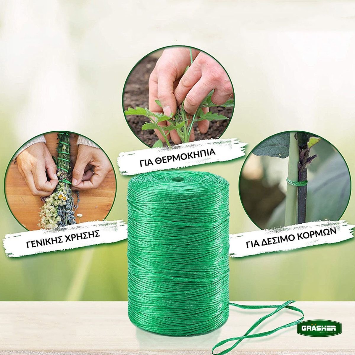 Ο πράσινος σπάγγος πολυπροπυλενίου 8000D της Grasher αποτελεί την πλέον καλαίσθητη και ανθεκτική επιλογή για την υποστήριξη των καλλιεργειών σας. Με βάρος 500 γραμμάρια και συνολικό μήκος 500 μέτρα ανά ρολό, συνδυάζει την υψηλή αντοχή με τη διακριτική παρουσία στον χώρο, καθώς το πράσινο χρώμα του εναρμονίζεται πλήρως με το φυσικό περιβάλλον και το φύλλωμα των φυτών.