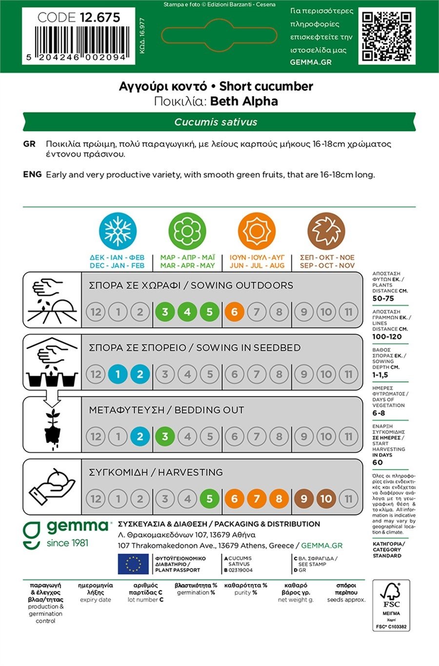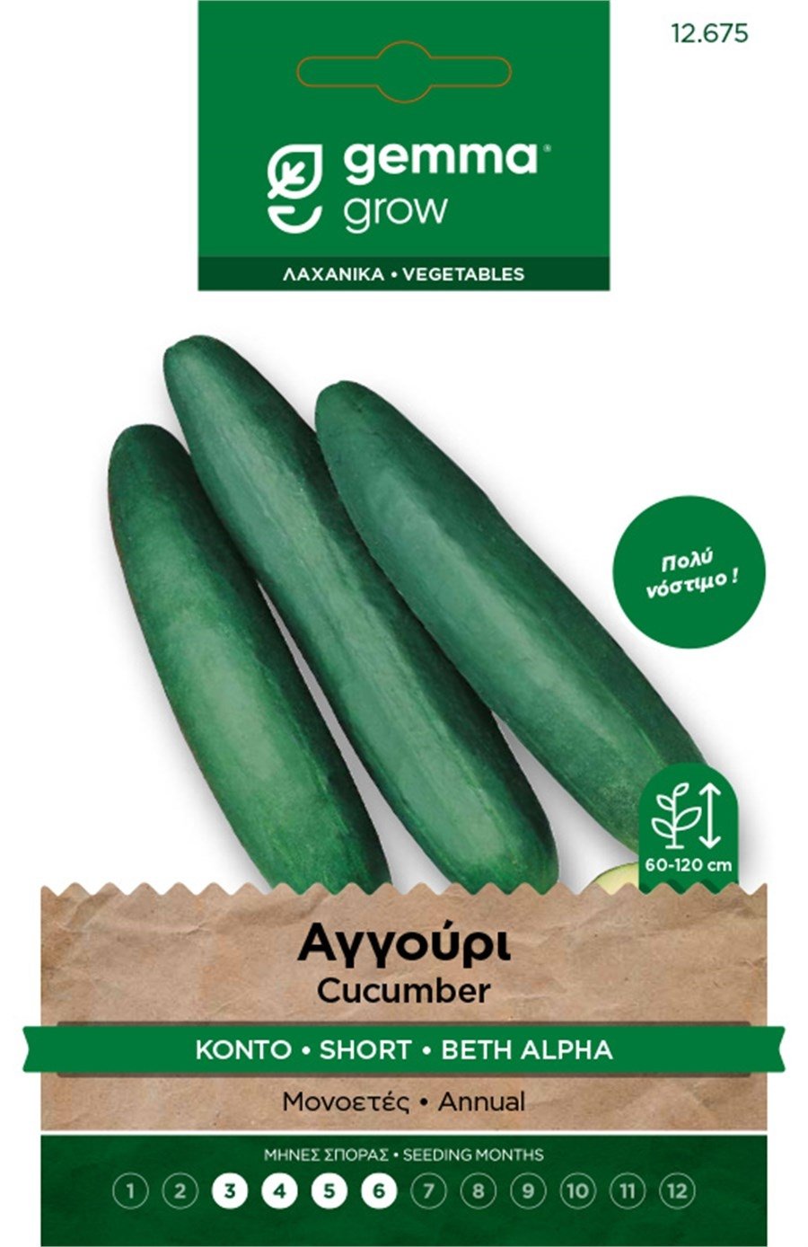 Tο Αγγούρι Κοντό Beth Alpha είναι μια από τις πιο δημοφιλείς ποικιλίες για πρώιμη και πλούσια παραγωγή. Δίνει λείους καρπούς μήκους 16-18cm, με έντονο πράσινο χρώμα και δροσερή, νόστιμη σάρκα, ιδανική για σαλάτες, χωριάτικη και τζατζίκι.