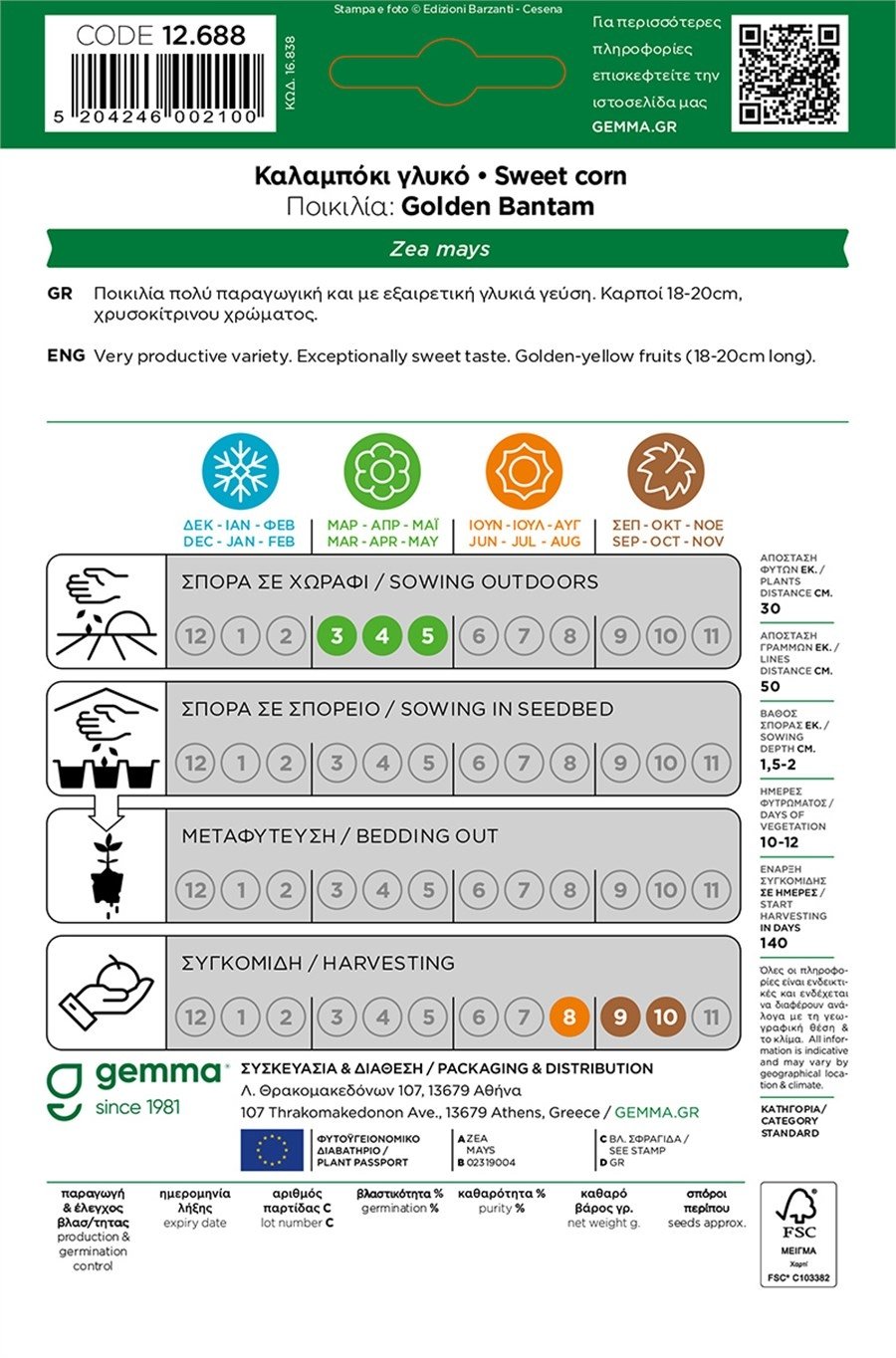● Ποικιλία: Golden Bantam (γλυκό καλαμπόκι)