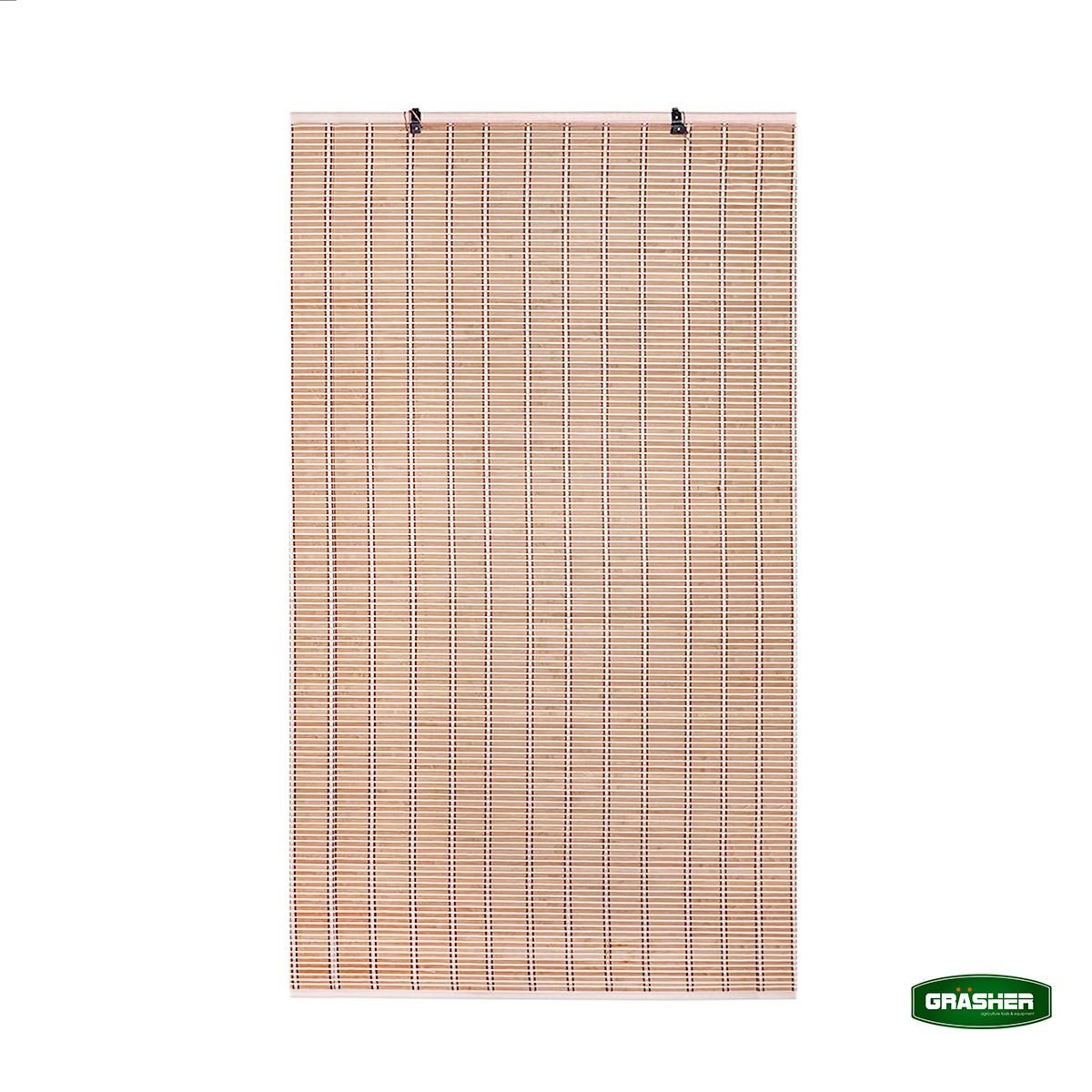 Το στόρι σκίασης μπαμπού Grasher BR2115 σε διάσταση 1,50 x 1,80 m αποτελεί μια πρακτική και διακοσμητική επιλογή για σκίαση παραθύρων, μπαλκονιών και βεραντών. Κατασκευασμένο από φυσικό ξύλο μπαμπού σε ζεστή καφέ-φυσική απόχρωση, συνδυάζει ελκυστικό σχεδιασμό με λειτουργικότητα.