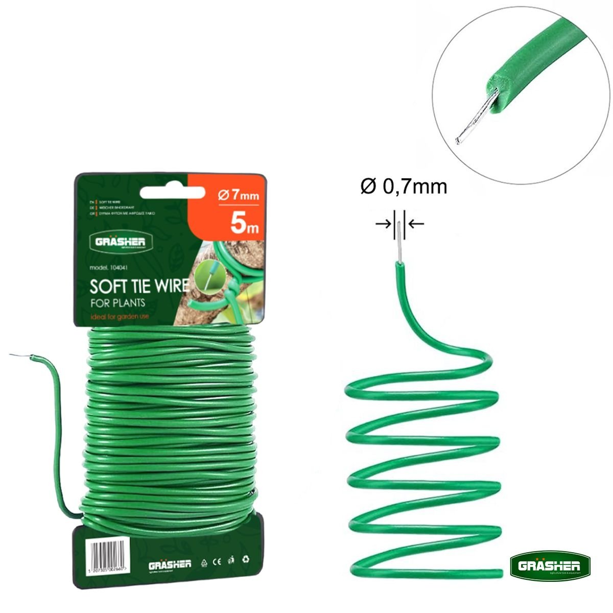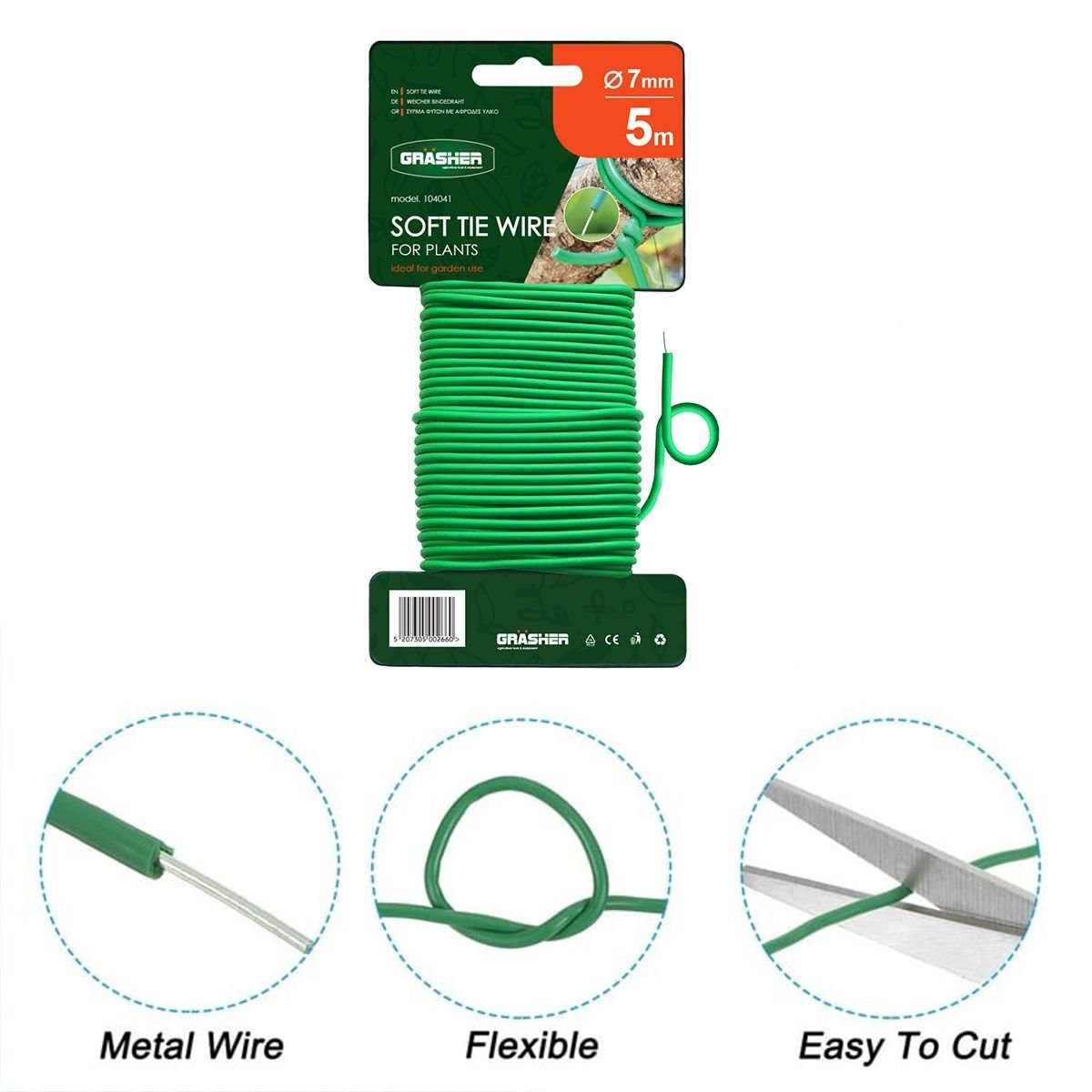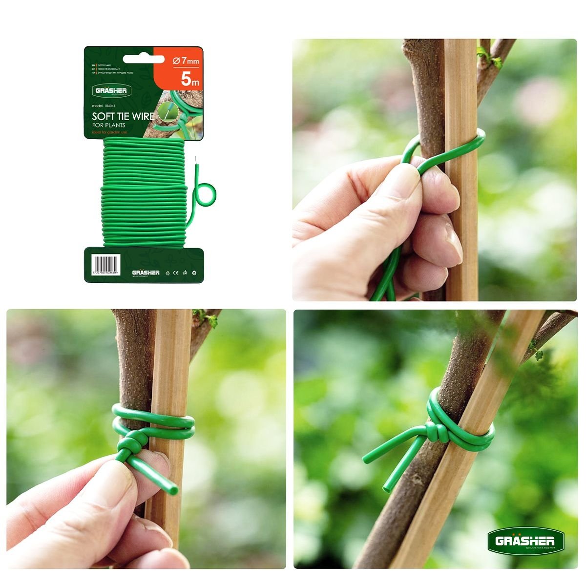 Το αφρώδες πλαστικοποιημένο σύρμα της Grasher 7mm αποτελεί την κορυφαία επιλογή για το δέσιμο φυτών που απαιτούν ιδιαίτερη φροντίδα και προστασία. Ο συνδυασμός του στιβαρού εσωτερικού σύρματος με την παχιά, αφρώδη επένδυση PVC εξασφαλίζει ότι το φυτό παραμένει σταθερό στη θέση του, ενώ ταυτόχρονα το υλικό "αναπνέει" και δεν τραυματίζει καθόλου τον φλοιό.